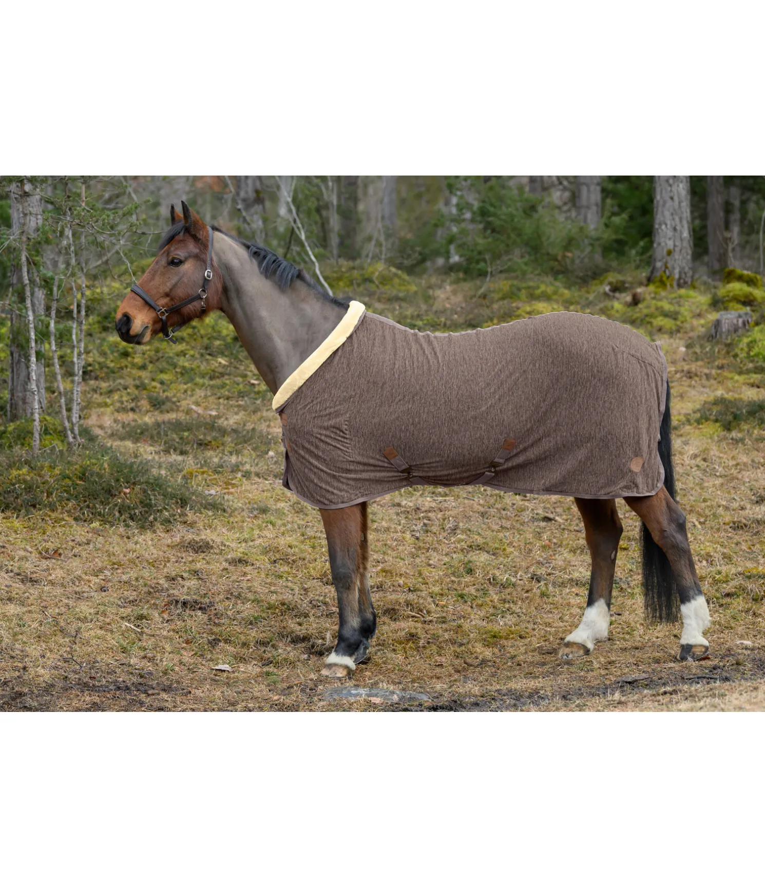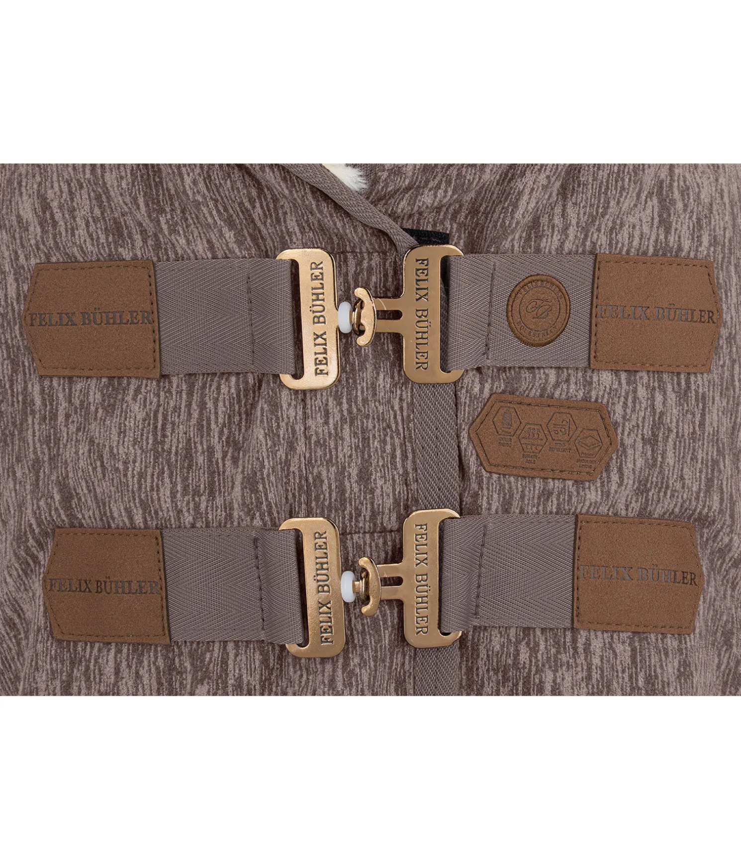 Chemise séchante en tricot polaire chiné avec col en polaire Teddy douce. Assortie à la collection Felix Bühler Knitted. Garde le cheval bien au chaud avant et après le travail et favorise l’évacuation de la transpiration et de l’humidité. Logo en velours synthétique embossé. Double fermeture de poitrail avec crochets en T et patte auto-agrippante supplémentaire, doublure intérieure lisse protégeant la robe au niveau des épaules. Équipée de sursangles croisées et d’une courroie de queue réglables. 100 % polyester.