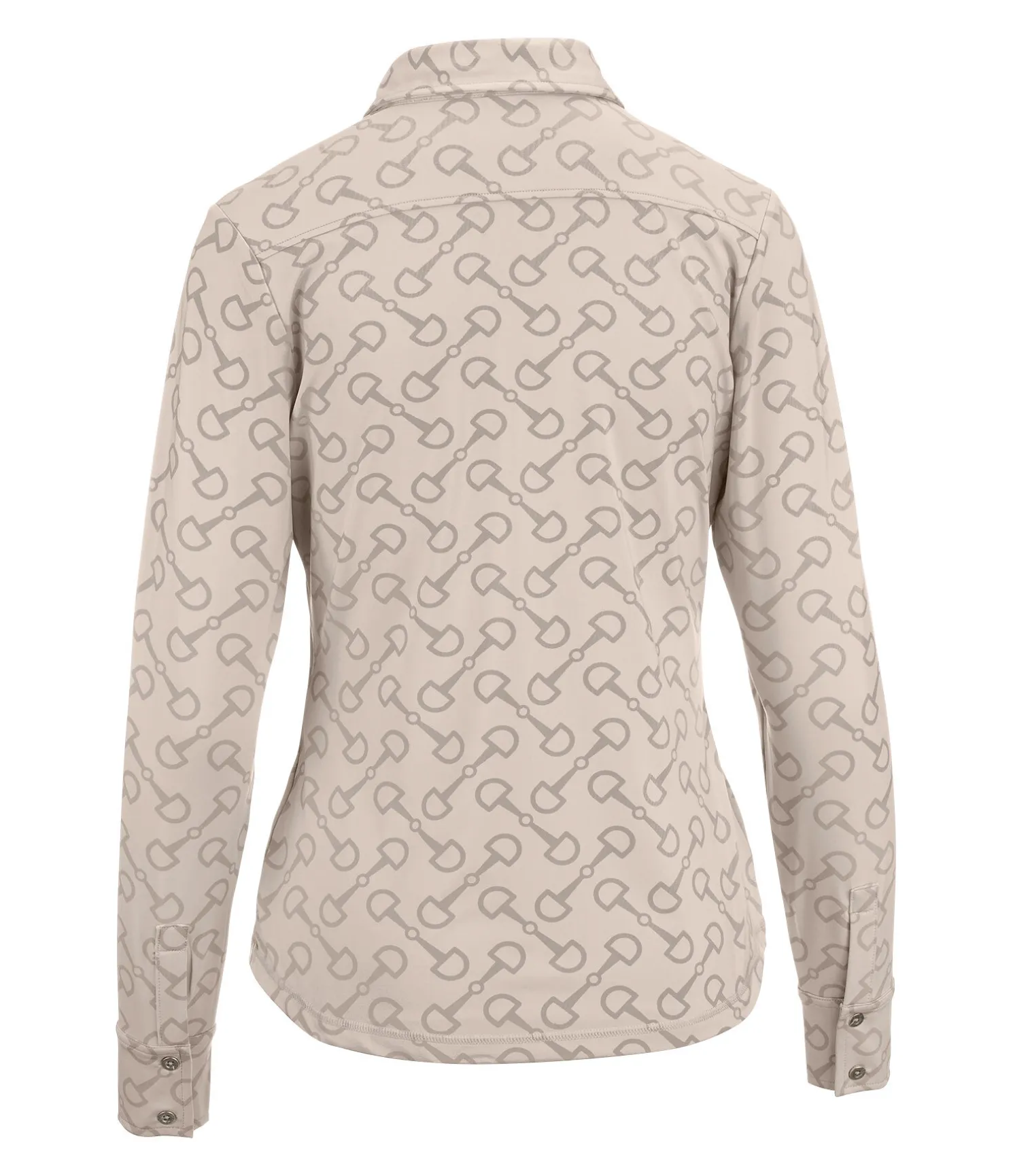 Élégante chemise extensible en matière technique respirante et à séchage rapide avec imprimé all-over à motif mors. Patte de boutonnage et boutons en bas des manches. 85 % polyester, 15 % élasthanne.