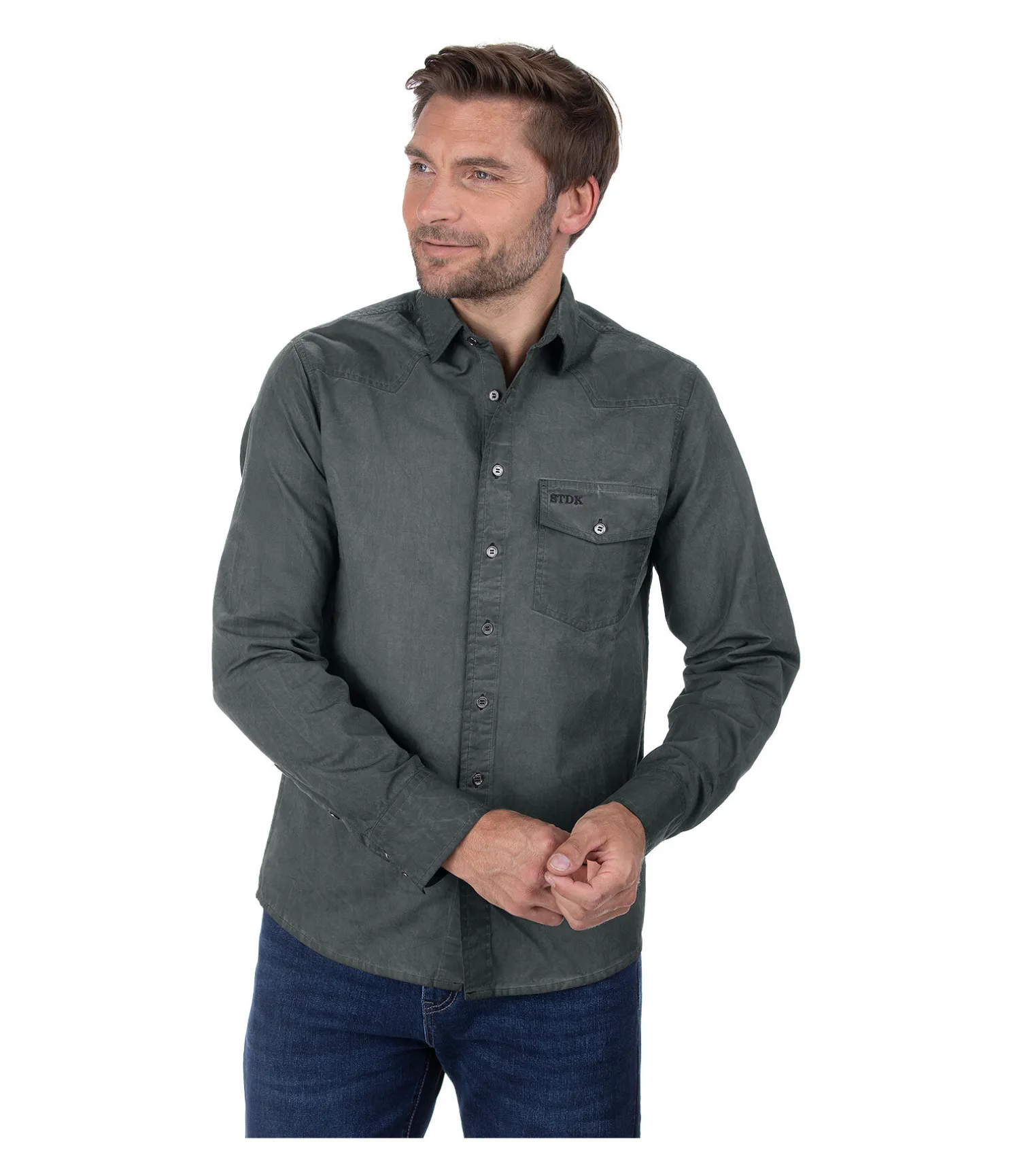 Chemise légère décontractée. Effet délavé. Boutons avec reflets métallisés. Poche plaquée sur la poitrine. 98 % coton, 2 % élasthanne.
