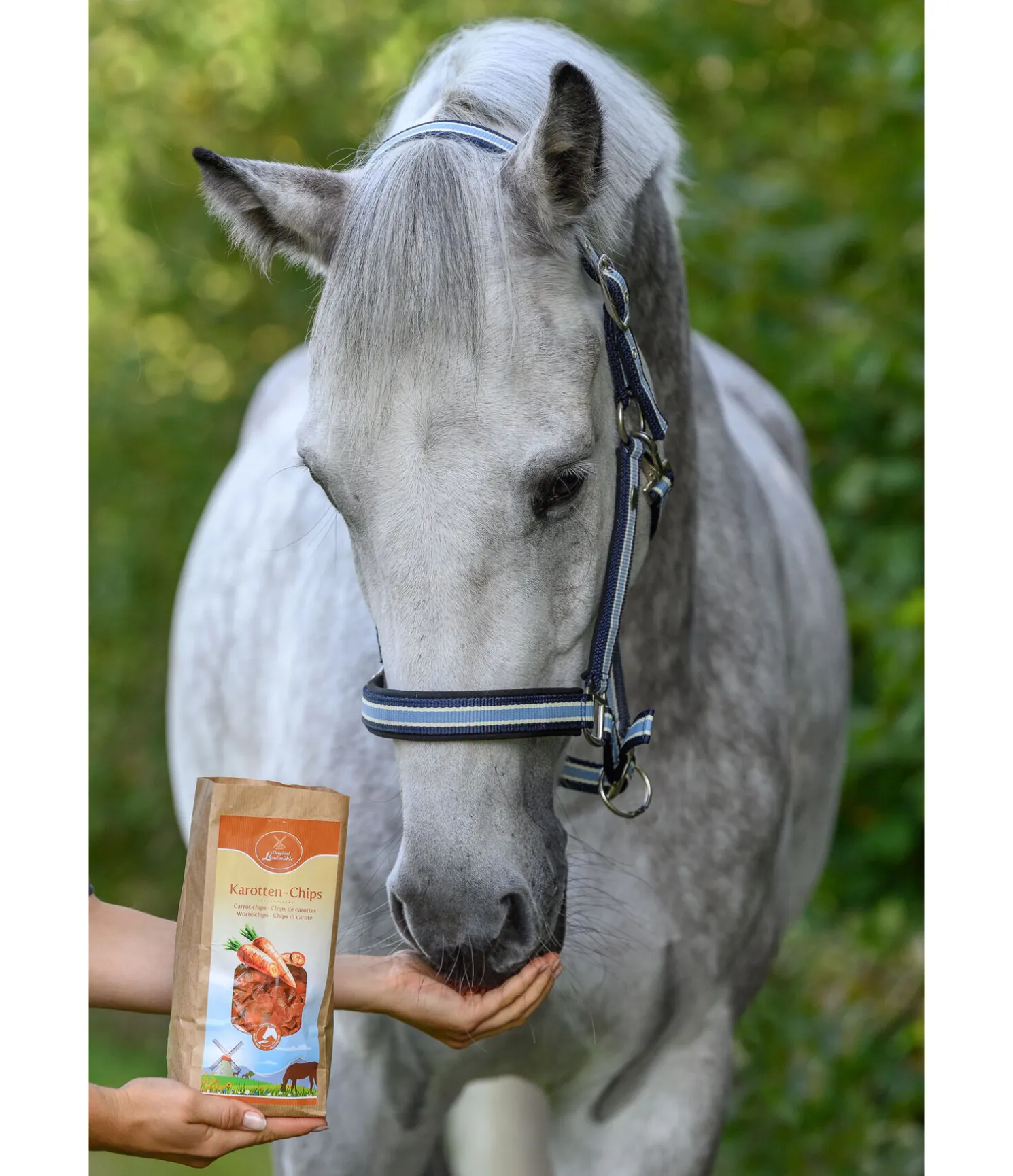 Snack naturel et sain : chips de carotte pouvant être données comme friandises variées ou comme garniture pour la ration. Également adaptées pour l’entraînement au clicker. Riches en bêta carotène ayant des propriétés antioxydantes, vitamines B6, B1, B2, vitamine E ainsi qu’en vitamine C renforçant le système immunitaire. Parfaitement adaptées aux chevaux ayant des problèmes intestinaux ou devant être nourris sans mélasse.