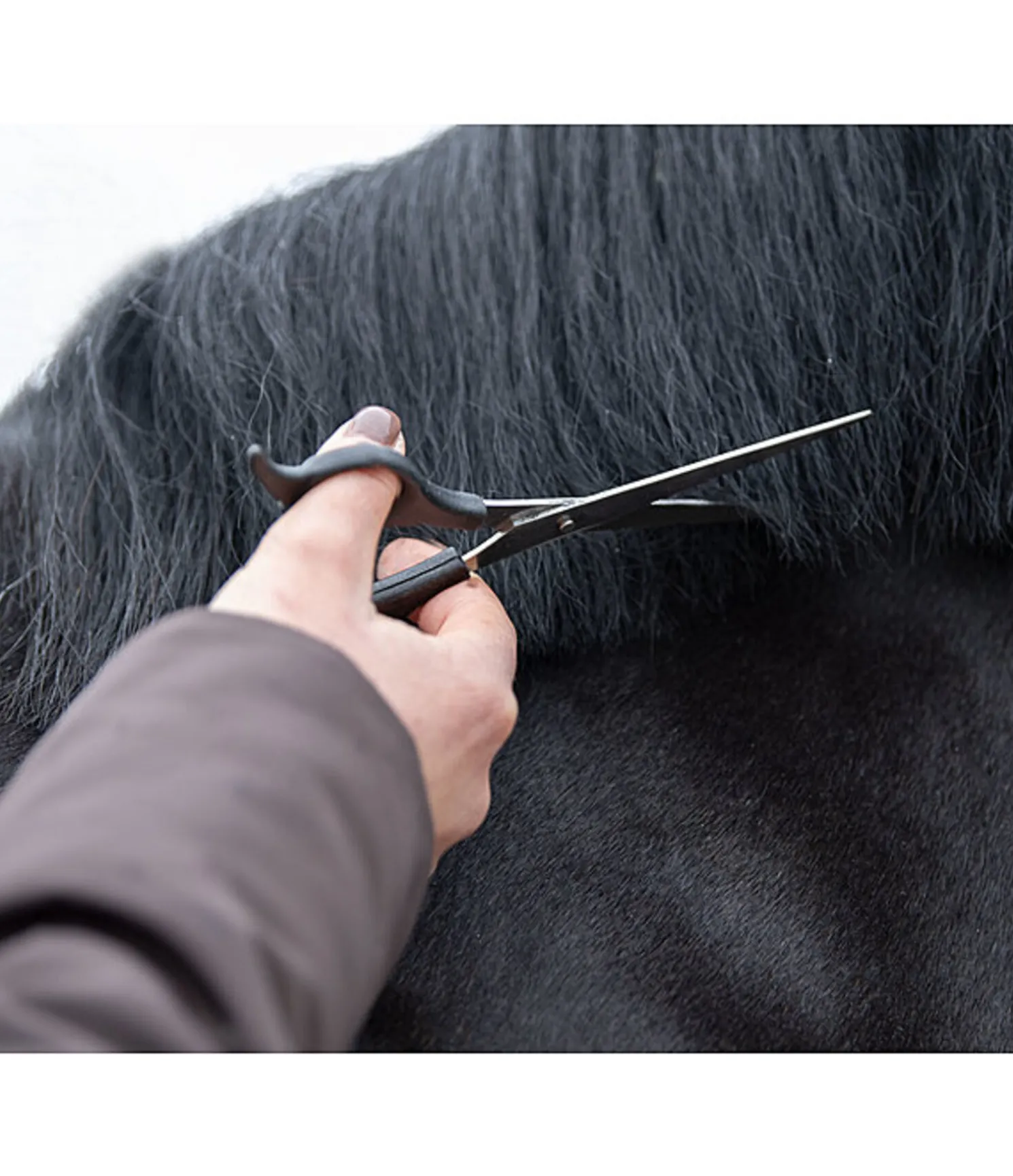 Ciseaux avec poignées en plastique pour couper la queue et la crinière. L 12,5 x l 7,5 x h 3 cm.