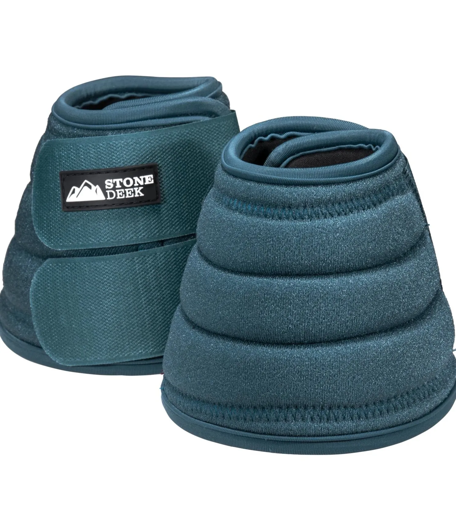 Cloches western protégeant les sabots, les glomes et les couronnes pendant l’exécution de spins. Doublure respirante. Bordures élastiques résistantes. Pattes auto-agrippantes solides pour un maintien sûr. Faciles d’entretien. Vendues par paire.