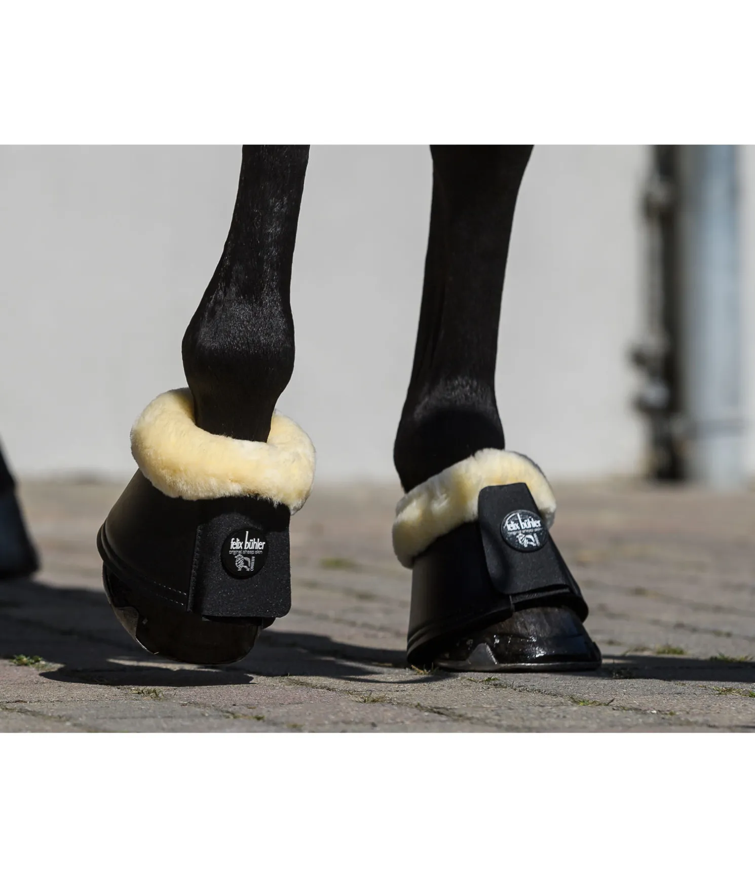 Cloches d’obstacle élégantes. Bordure douce en véritable fourrure d’agneau pour protéger la couronne. Extérieur en matière synthétique facile d’entretien. Doublure intérieure moelleuse en caoutchouc chloroprène. Large patte auto-agrippante pour une fermeture rapide et un maintien sûr. Vendues par paire.