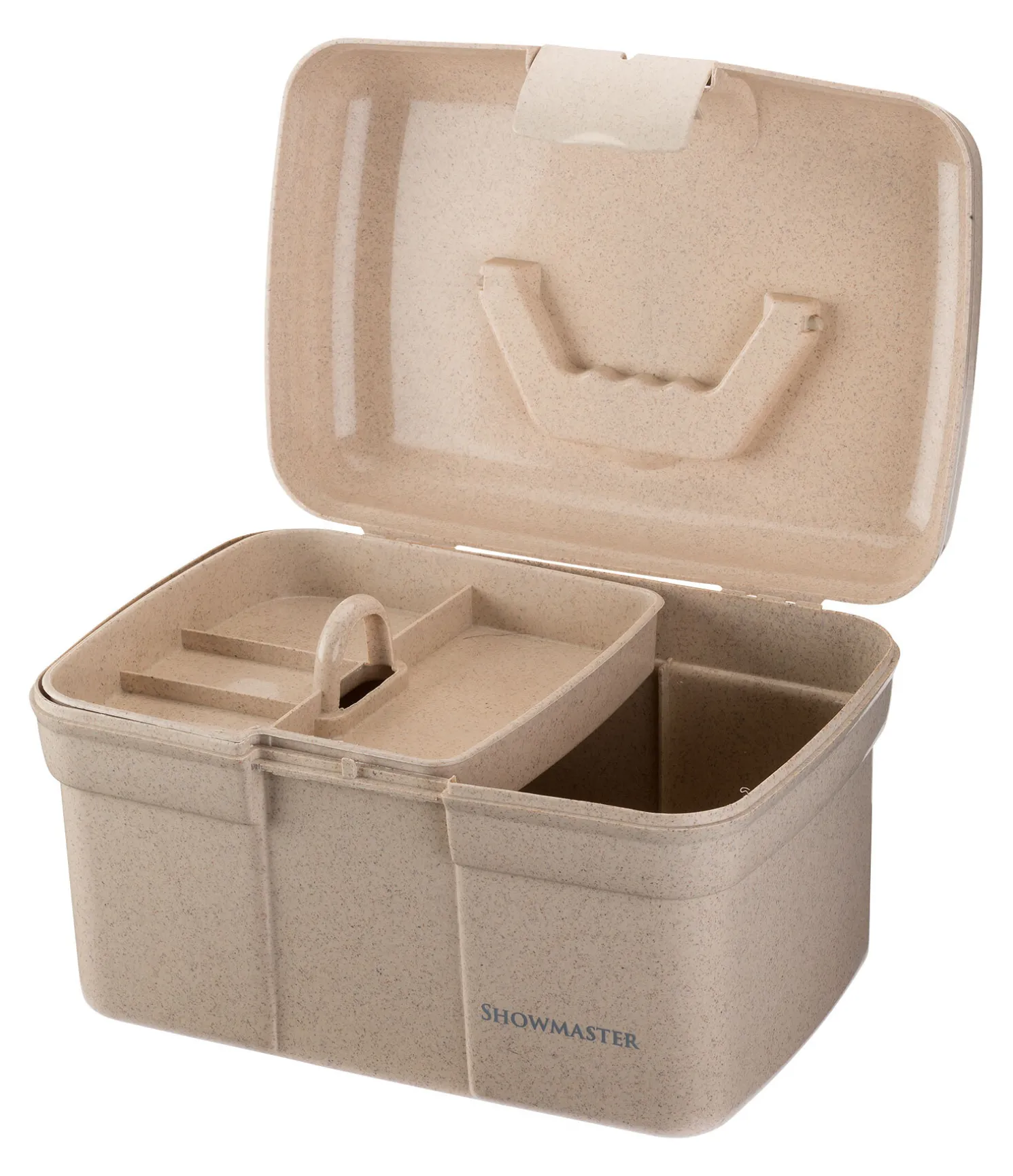 Coffre de pansage pratique en matière durable. Composé à 45 % de plastique recyclé et à 55 % de fibres de paille et de riz. Casier amovible pour les petits ustensiles. 28,5 x 21 x 20 cm.