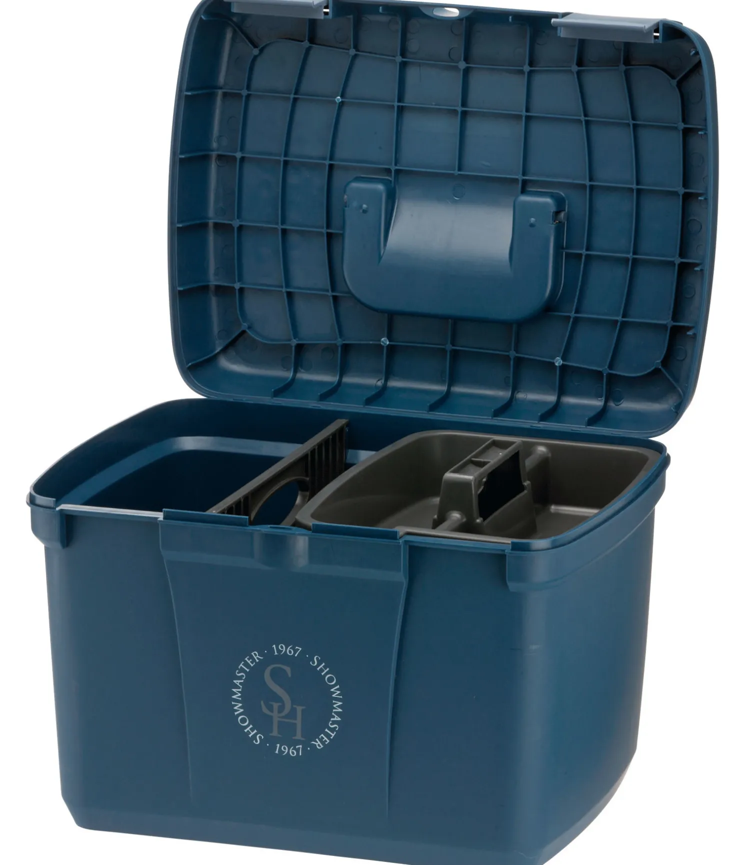 Grand coffre de pansage solide, en matière plastique de qualité. Un compartimentage intérieur permet de ranger à la verticale les produits d’entretien tels que les flacons. Compartiment amovible pour les petits accessoires. Verrouillable. Cadenas non inclus. 40 x 30 x 30 cm.