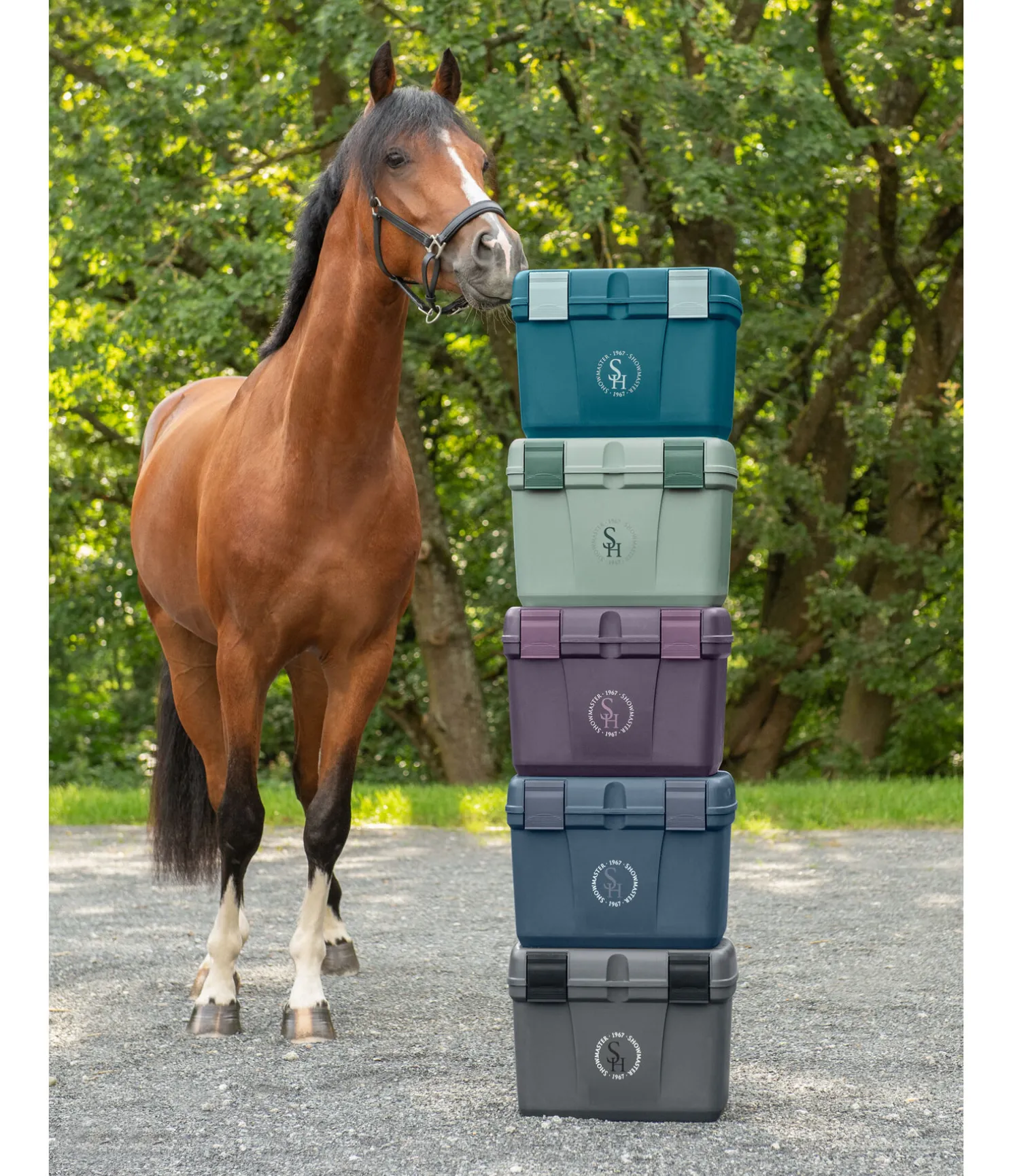 Grand coffre de pansage solide, en matière plastique de qualité. Un compartimentage intérieur permet de ranger à la verticale les produits d’entretien tels que les flacons. Compartiment amovible pour les petits accessoires. Verrouillable. Cadenas non inclus. 40 x 30 x 30 cm.