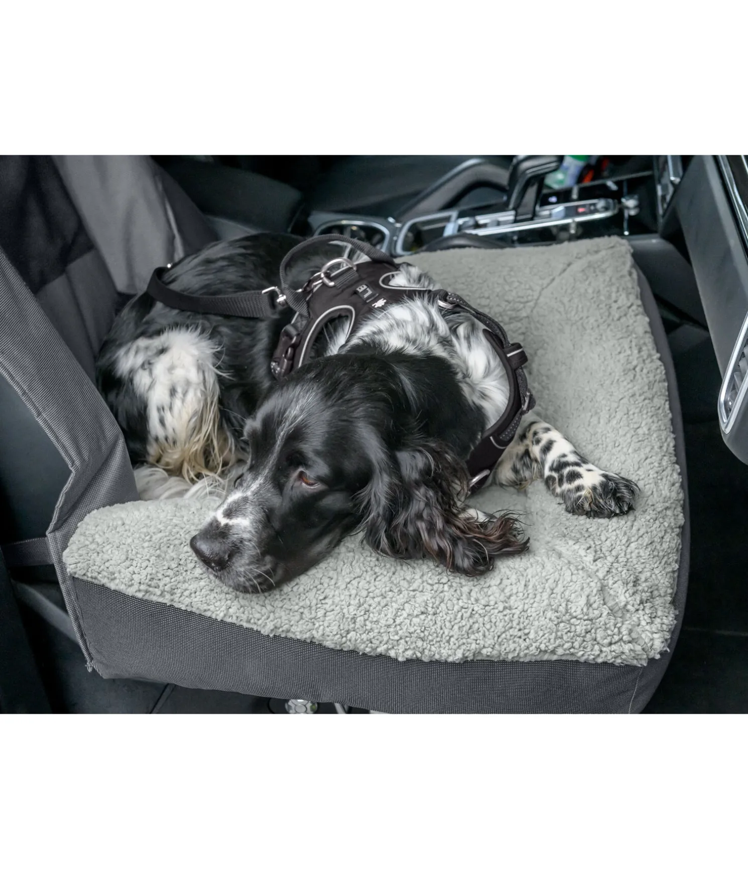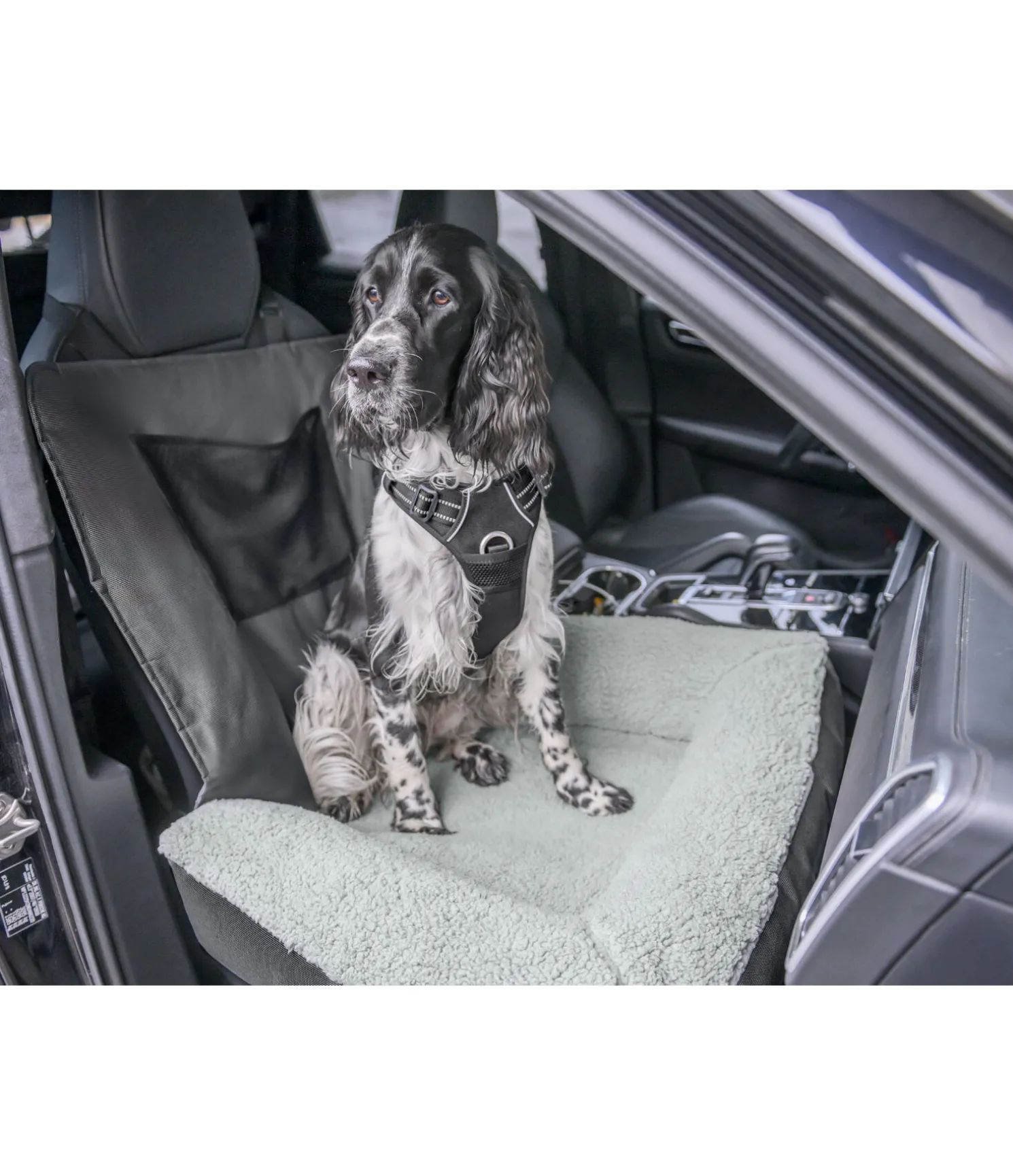 Coussin pour chien pratique pour les trajets en voiture. Il suffit de le fixer au dossier et à l’appui-tête du siège passager ou à la banquette arrière à l’aide des deux sangles et des clips de fixation. La housse de dossier intégrée protège l’intérieur de ton véhicule des poils et de la saleté et dispose d’une poche en filet pour ranger les accessoires. La surface de couchage douce et moelleuse a un bord légèrement surélevé pour y poser la tête ou s’y blottir. La laisse de sécurité avec mousqueton permet d’attacher le chien par son harnais au coussin. Nous recommandons toutefois d’attacher le chien en premier lieu avec un adaptateur de ceinture. Convient aux chiens de petite ou moyenne taille. Housse amovible et lavable en machine. Dimensions de la surface de couchage : 61 cm x 50 cm x 15 cm. 100 % polyester. Caractéristiques :