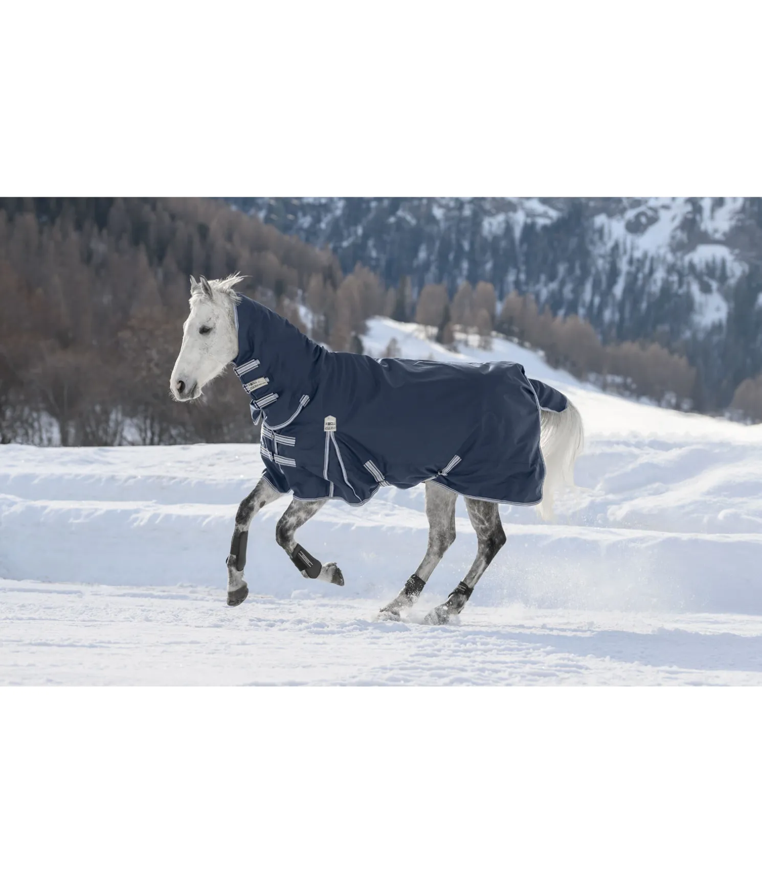 Notre best-seller existe aussi avec un couvre-cou intégré ! Couverture d’extérieur imperméable (3.000 mm) et respirante. Matière Ripstop 600 deniers. Couvre-cou intégré (Fullneck) pour protéger le cheval du vent, du froid et de la pluie. Plis d’aisance pour une liberté de mouvement optimale, double fermeture de poitrail avec crochets en T et patte auto-agrippante supplémentaire, sursangles croisées réglables et rabat de queue. Garnissage très chaud de 400 g pour les jours d’hiver très froids. Anneaux permettant la fixation de courroies de cuisses (non incluses), courroie de queue réglable incluse. Doublure intérieure lisse protégeant la robe. 100 % polyester.