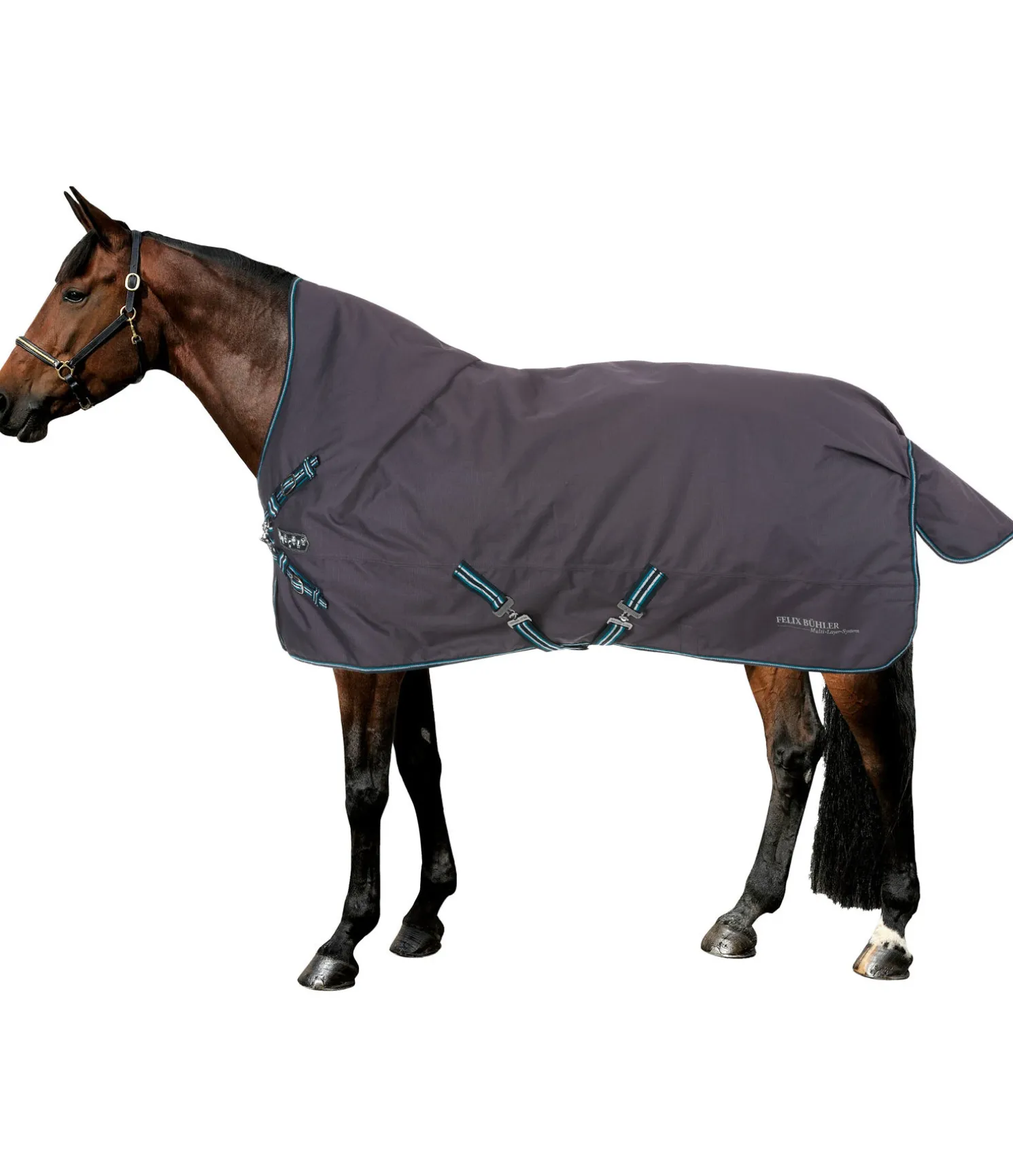 Couverture d’extérieur 4 en 1 avec système de liners innovant, dans une coupe Highneck ! Une couverture – une multitude de possibilités : couverture d’extérieur en matière imperméable (5.000 mm) et particulièrement robuste 1.200 deniers. Livrée avec 2 liners matelassés de 100 g (vert) et 200 g (bleu). La partie imperméable comprend une longue fermeture à glissière dissimulée le long des flancs, qui permet de fixer les différents liners à la couverture avec des pattes auto-agrippantes supplémentaires. Les deux liners peuvent être combinés pour les jours les plus froids afin de former une couverture 300 g. Cette couverture peut ainsi être utilisée en tant que simple chemise imperméable 0 g ou en tant que couverture avec garnissage 100 g, 200 g ou 300 g. Ce système innovant permet d’ajouter des épaisseurs sans embarrasser le cheval avec des fermetures, sursangles ou boucles supplémentaires. Grâce à ce système, cette couverture est également plus pratique et moins encombrante que les couvertures avec liners classiques. La partie extérieure est équipée d’une fermeture de poitrail équilibrée en plusieurs points réglable des deux côtés, avec mousquetons, anneaux et patte auto-agrippante supplémentaire. Rembourrage au niveau de l’encolure pour un confort optimal. Doublure lisse protégeant la robe pour éviter les irritations dues aux frottements. Sursangles croisées réglables, rabat de queue et courroie de queue. Anneaux permettant de fixer des courroies de cuisses (non incluses). 100 % polyester. En raison de ses propriétés innovantes, ce produit est protégé par un modéle d’utilité.
