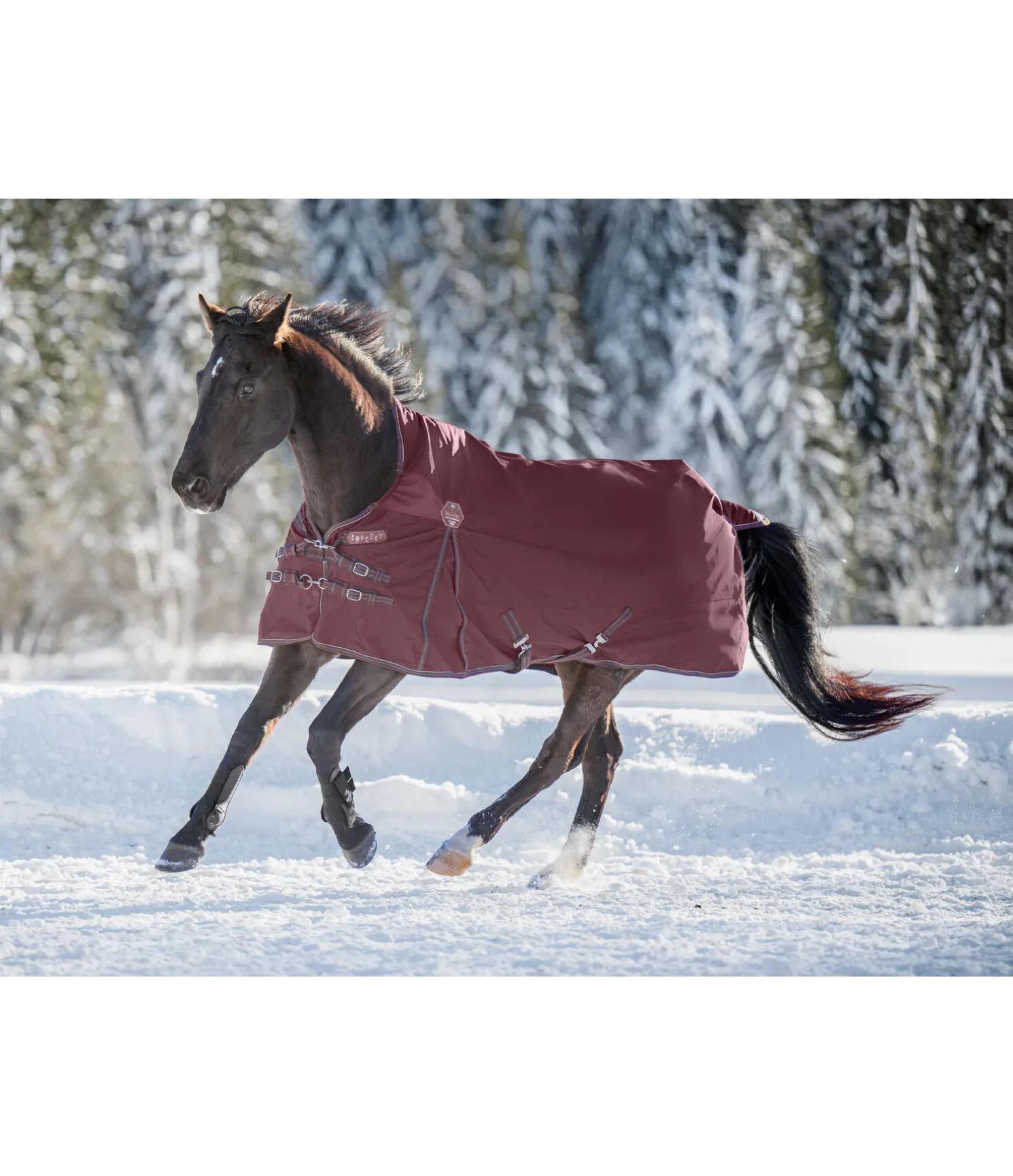 Notre best-seller ! La matière extérieure offre désormais une plus grande résistance à la déchirure et une meilleure imperméabilité pour garantir une longévité optimale avec le même confort qu’auparavant ! Couverture d’extérieur fonctionnelle dans une coupe Highneck. Matière en nylon 1 680 deniers particulièrement résistante. Grande imperméabilité (5.000 mm). Comparé au polyester, le nylon est nettement plus doux et soyeux, avec des reflets satinés. Il est également plus extensible que le polyester pour une meilleure résistance à la déchirure. Garnissage de 200 g. Inserts extensibles déperlants en softshell au niveau des épaules et de l’encolure. Grands plis d’aisance pour une liberté de mouvement optimale afin d’éviter les pressions. Rembourrage intérieur généreux pour minimiser davantage les pressions au niveau du garrot. Fermeture de poitrail réglable équilibrée en 3 points, constituée de 2 anneaux et 2 mousquetons et d’une patte auto-agrippante supplémentaire. Les mousquetons peuvent être facilement remplacés si besoin. Doublure lisse protégeant la robe. Sursangles croisées réglables et anneaux permettant la fixation de courroies de cuisses (non incluses). Courroie de queue et rabat de queue réglables en longueur avec bandes et passepoil réfléchissants sur le pourtour. Peut être parfaitement associée avec l’extension de poitrail assortie, article 422 664. Extérieur 100 % nylon, doublure et garnissage 100 % polyester.