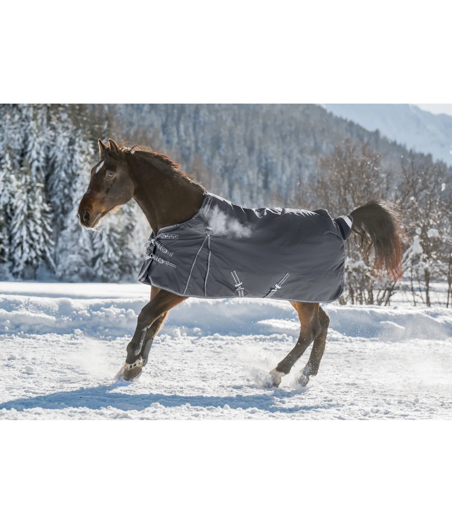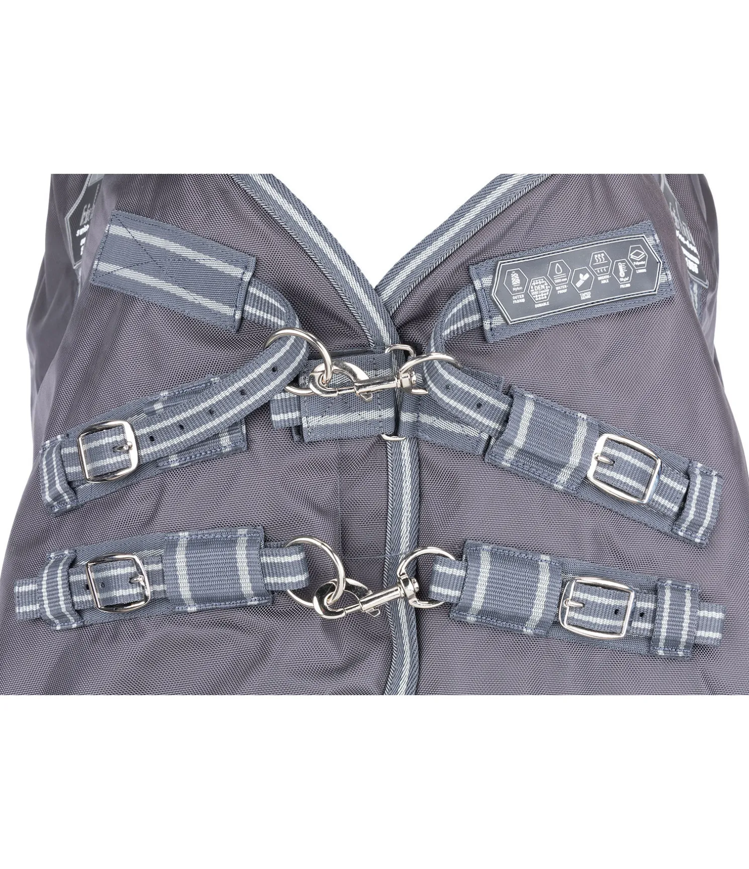 Couverture d’extérieur fonctionnelle et polyvalente dans une coupe classique (Regularneck). Matière 1 680 deniers particulièrement résistante. Grande imperméabilité (5 000 mm). Comparé au polyester, le nylon est nettement plus doux et présente des reflets satinés. Matière beaucoup plus extensible que le polyester pour une meilleure résistance à la déchirure. Sans garnissage. Empiècements extensibles et déperlants en softshell au niveau des épaules et de l’encolure. Grands plis d’aisance pour une liberté de mouvement optimale, permettant d’éviter les pressions. Rembourrage intérieur généreux pour minimiser davantage les pressions au niveau du garrot. Fermeture de poitrail réglable équilibrée en 3 points, constituée de 2 anneaux et 2 mousquetons et d’une patte auto-agrippante supplémentaire. Les mousquetons peuvent être facilement remplacés si besoin. Doublure lisse protégeant la robe. Sursangles croisées réglables et anneaux permettant la fixation de courroies de cuisses (non incluses). Courroie de queue réglable en longueur et rabat de queue avec bandes et passepoil réfléchissants sur le pourtour. Avec fixations supplémentaires pour un couvre-cou optionnel (article 422 669).