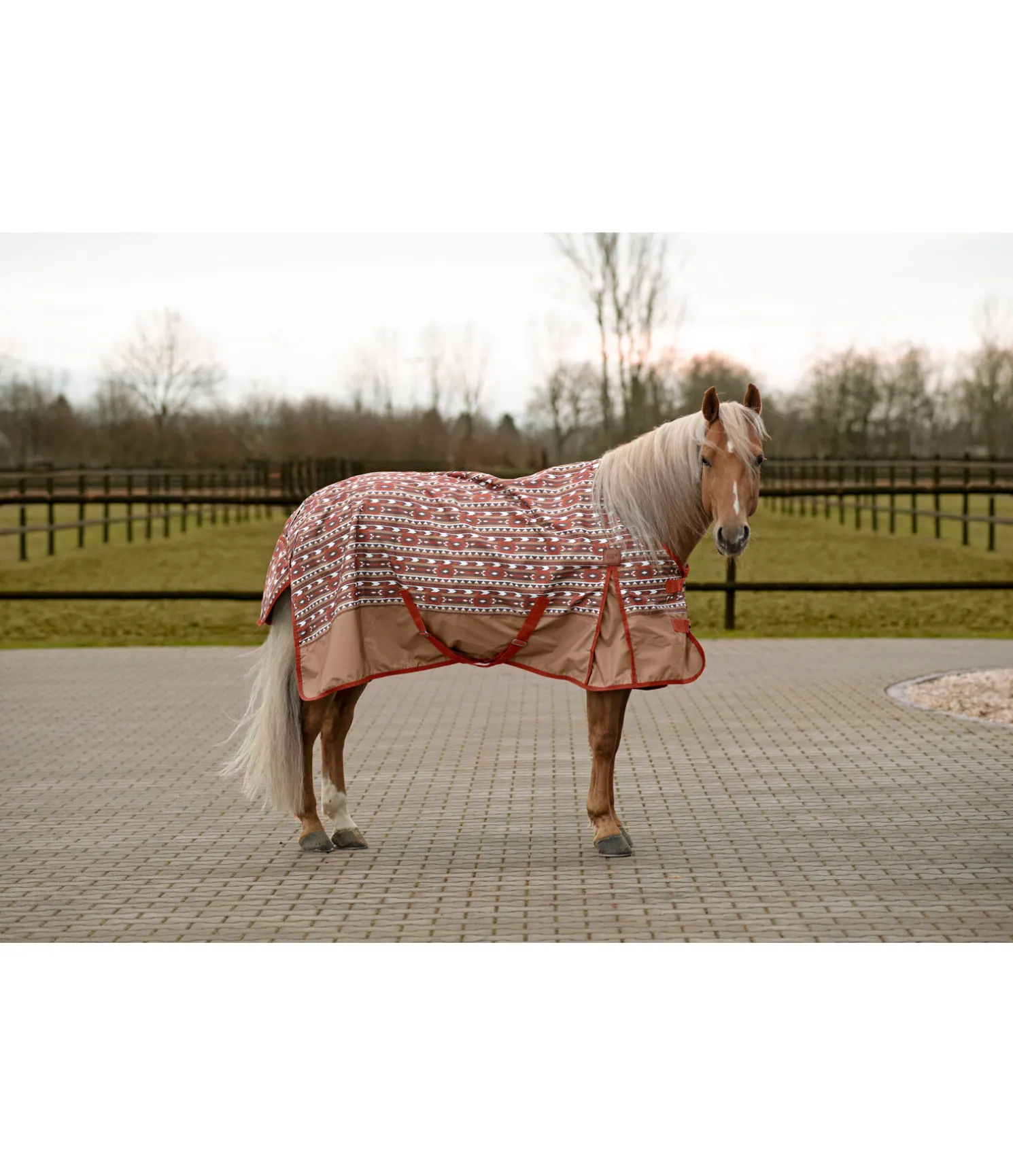Couverture imperméable sans grammage de type western. Imperméable (3.000 mm) et respirante. Plis d’aisance pour une liberté de mouvement optimale. Double fermeture de poitrail avec crochets en T et patte auto-agrippante, sursangles croisées réglables et rabat de queue. Dispositif permettant la fixation des courroies de cuisses. Courroie de queue réglable en longueur. Doublure intérieure lisse et agréable au toucher. 100 % polyester.