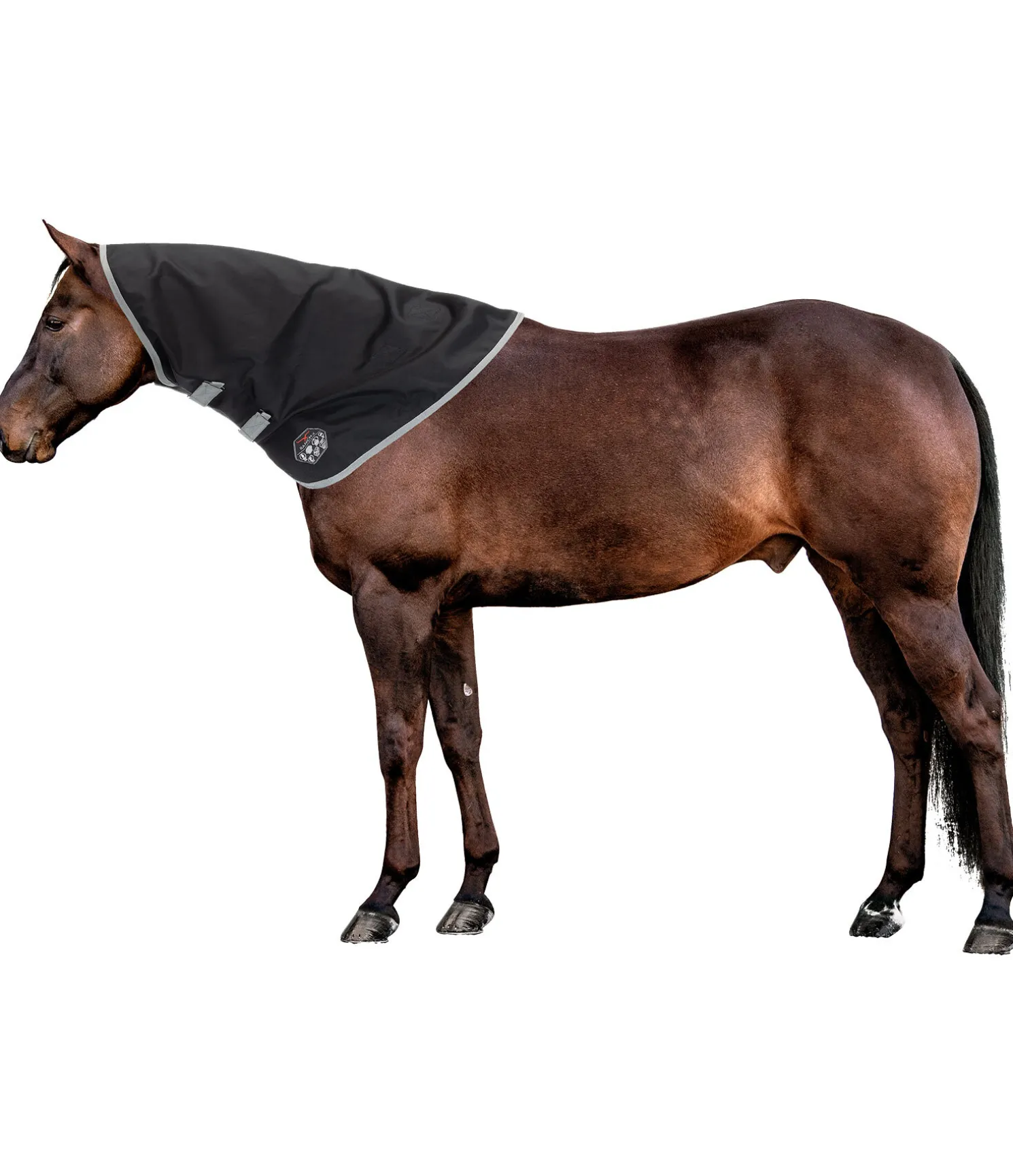 Couvre-cou assorti à notre couverture d’extérieur western All-Rounder référence 183709. Nylon 1680 deniers particulièrement résistant aux déchirures, avec une imperméabilité très élevée (5 000 mm) et une très bonne respirabilité. Doublure intérieure lisse douce pour la robe. Facile à fixer aux anneaux en D de la couverture grâce aux pattes auto-agrippantes. Matière extérieure 100 % nylon, doublure 100 % polyester.