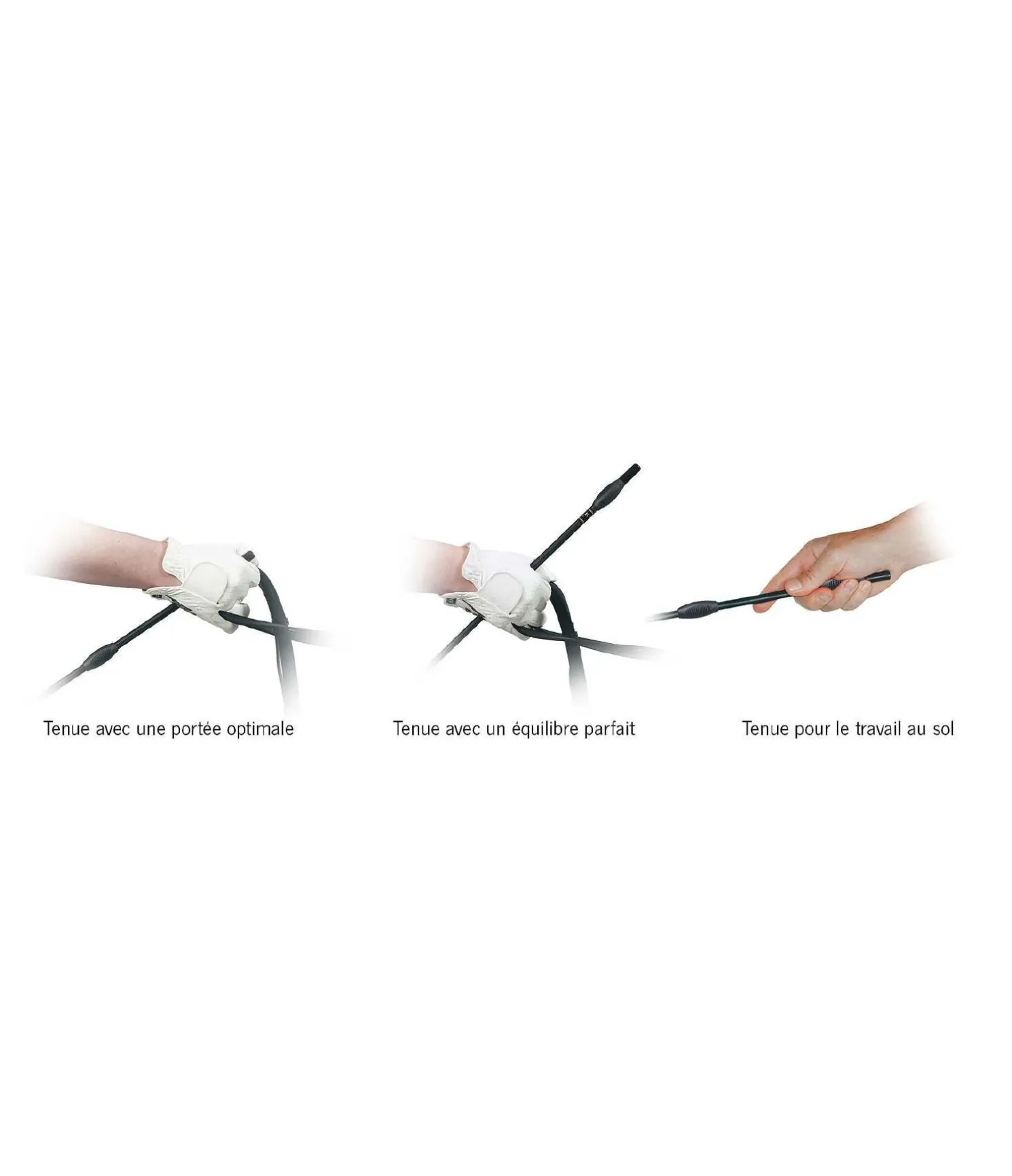 Une cravache de dressage équilibrée qui a fait ses preuves. Design revisité. Les poignées sont en synthétique antidérapant et permettent ainsi une meilleure prise en main. Tissage fil nylon.
