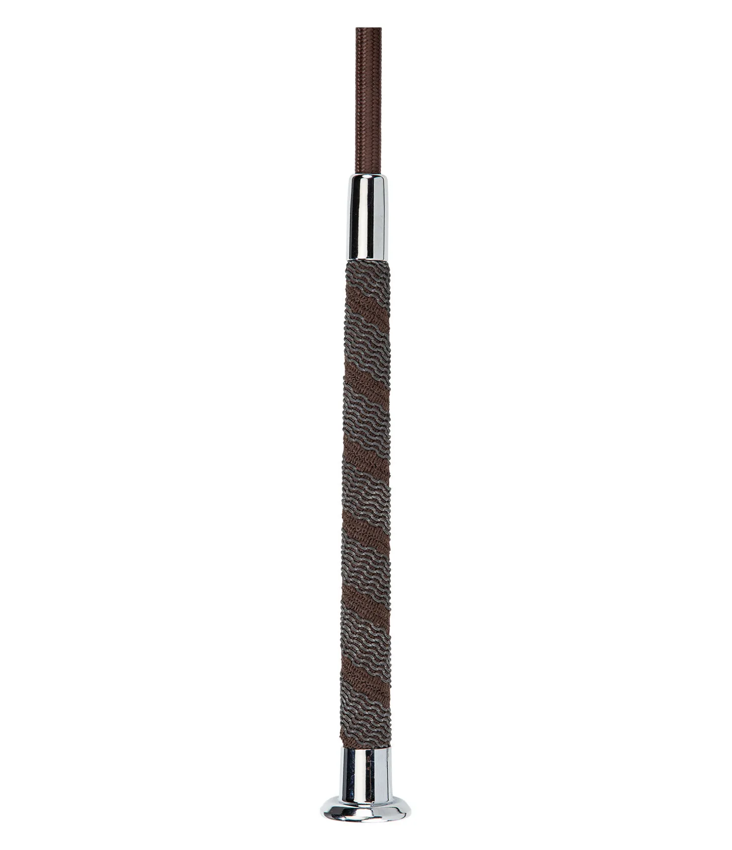 Cravache de dressage avec poignée antiglisse en caoutchouc. Large pommeau argenté, rose doré ou noir mat. Envoi dans un colis séparé.