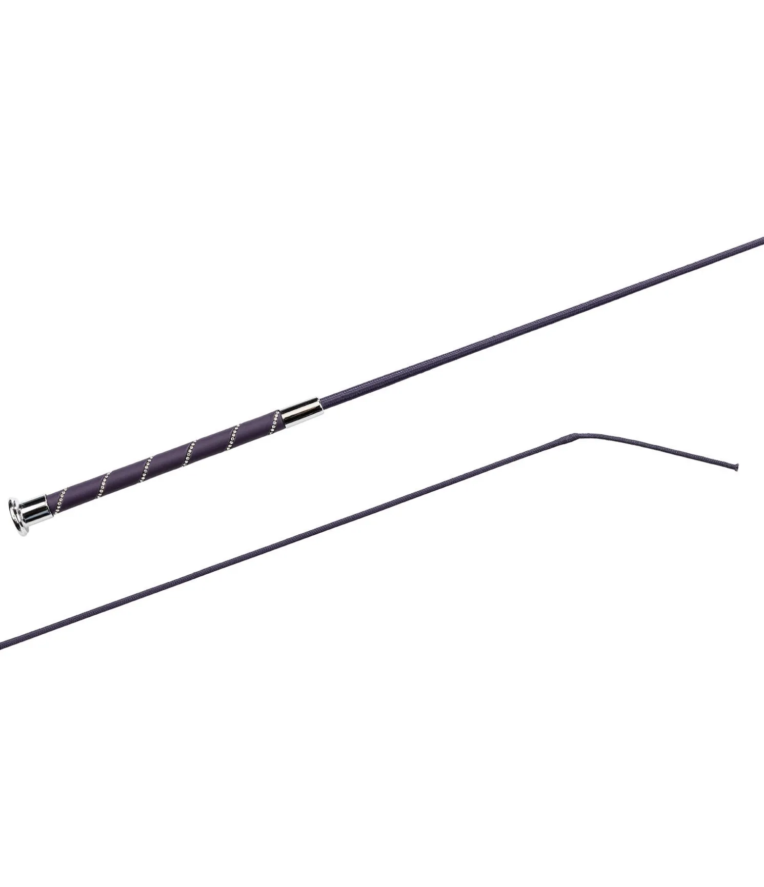 Cravache de dressage tendance avec poignée pailletée ornée de strass. Tiige en fibre de verre recouverte de nylon.