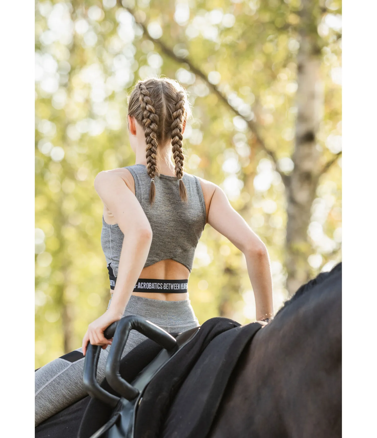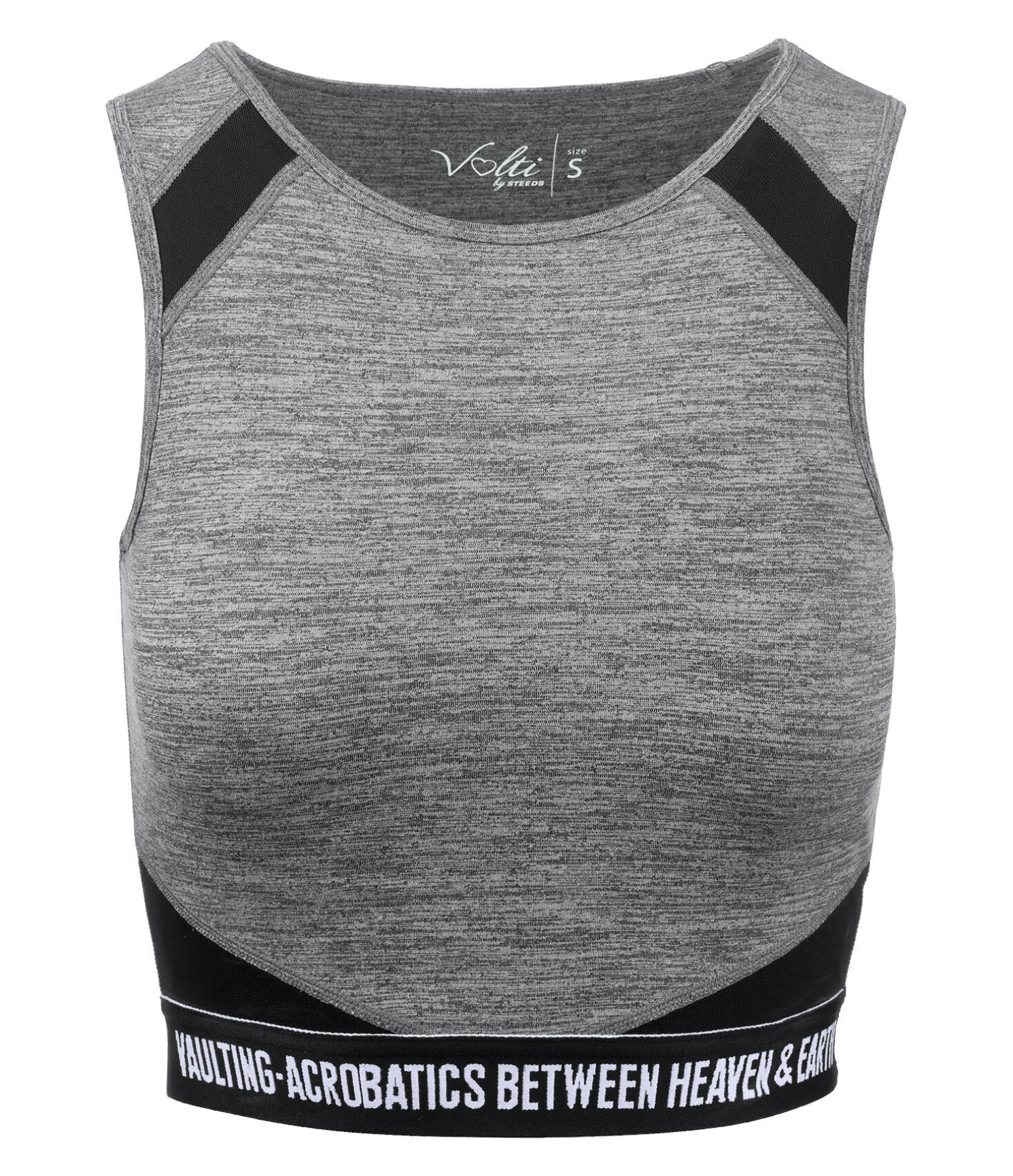 Crop top près du corps avec larges bretelles. Inserts en mesh, au niveau des côtes et des épaules, favorisant la circulation de l’air. Matière respirante et à séchage rapide. Brassière de sport intégrée avec coques amovibles pour un maintien optimal. Il est conseillé de retirer les coques avant le lavage. Bande élastiquée à la taille avec inscription brodée « Vaulting – Acrobatics between heaven & earth ». Découpe croisée travaillée dans le dos. 88 % polyester, 12 % élasthanne (carbone chiné) et 78 % polyester, 22 % élasthanne (aquamarine).