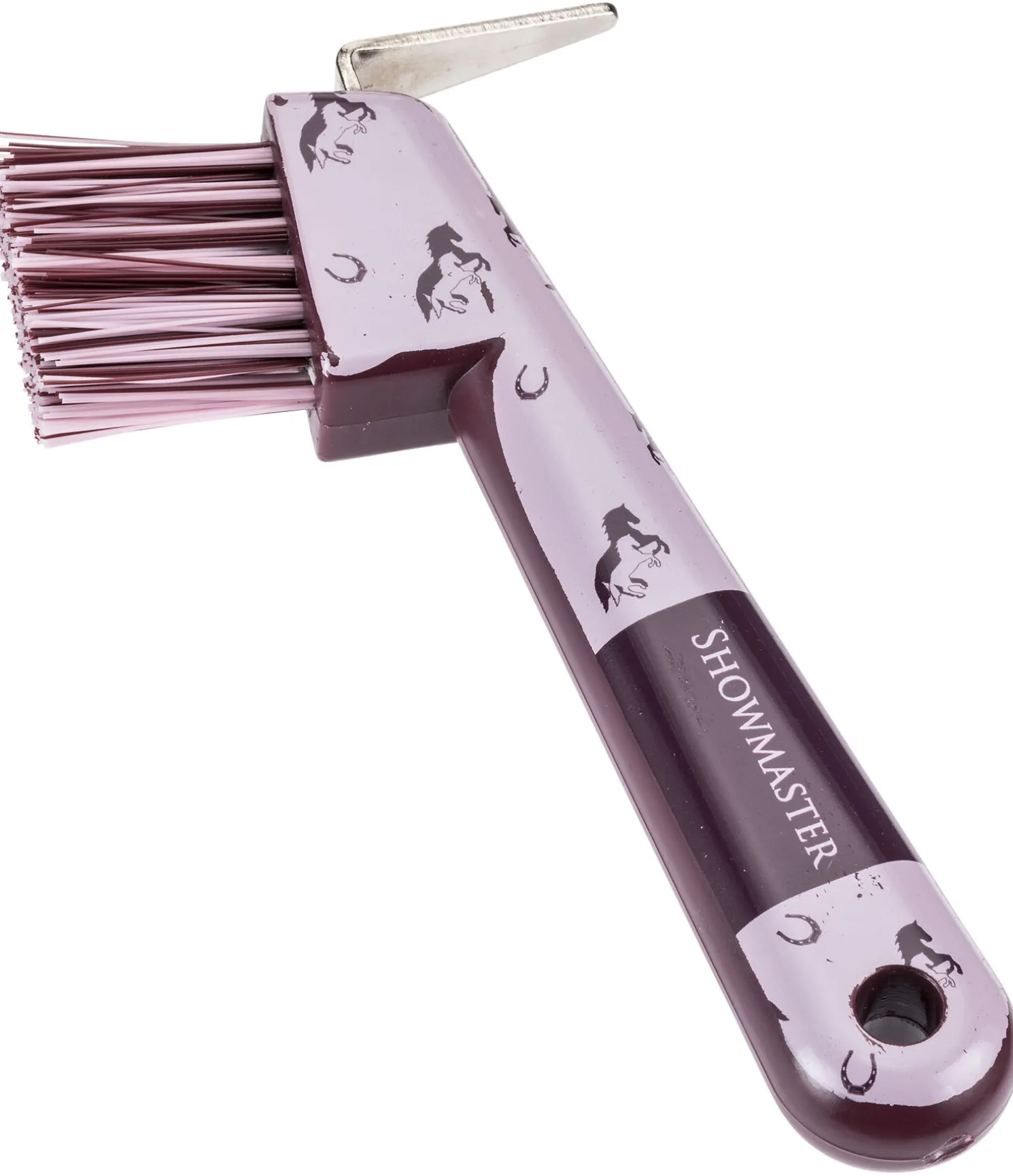 Cure-pied avec imprimé de petits chevaux et de fers à cheval. En plastique avec des poils synthétiques robustes. 15,5 x 8 cm. Parfaitement assorti au sac de pansage pour enfant SHOWMASTER Champion (432 464), aux autres articles de pansage de la collection enfant SHOWMASTER Champion et à la gamme de produits de soin SHOWMASTER Champion.