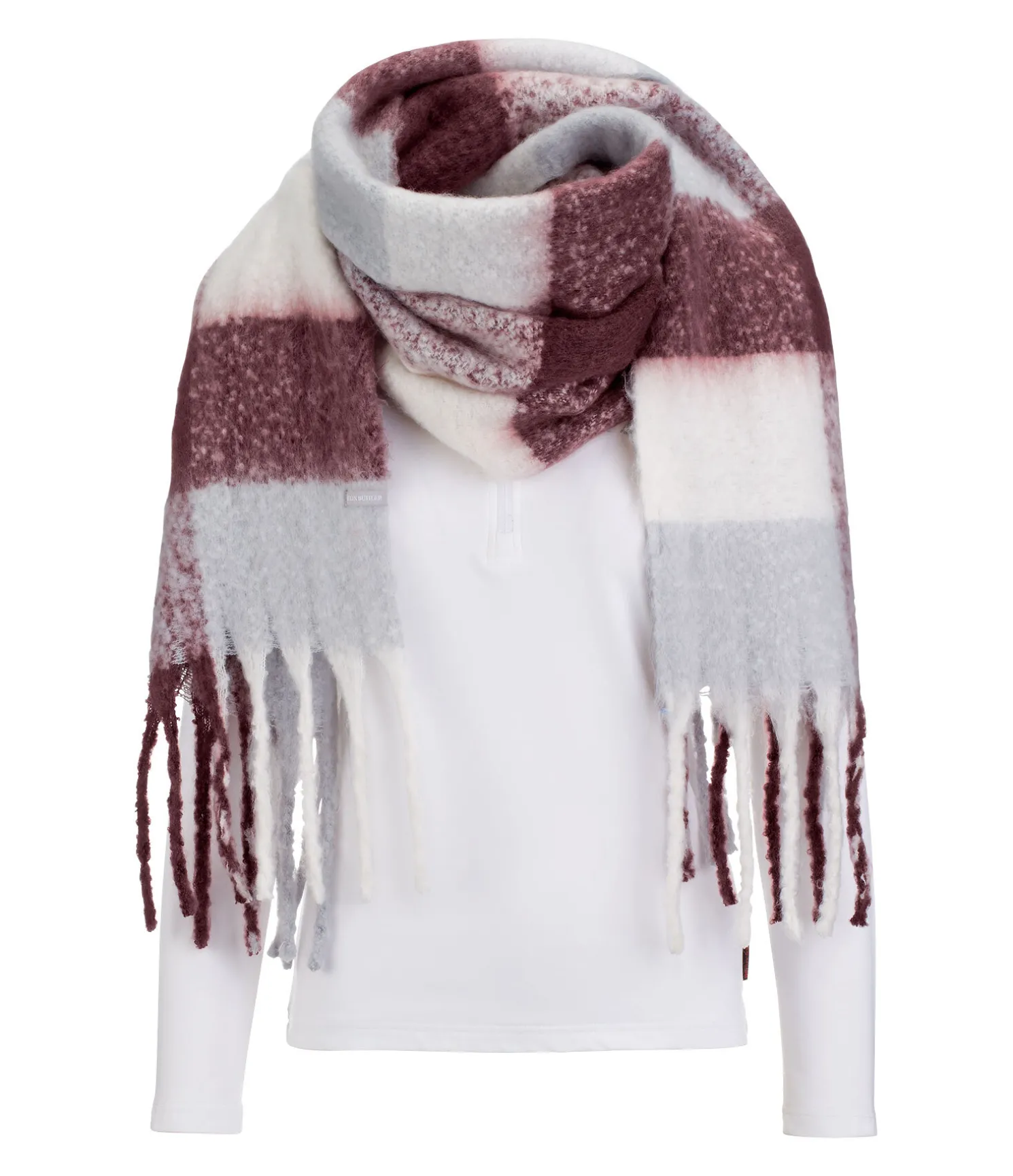 Sublime écharpe à franges large et très douce à carreaux. Se combine parfaitement avec la collection Felix Bühler. Environ 194 x 48 cm. 90 % polyester, 10 % laine.
