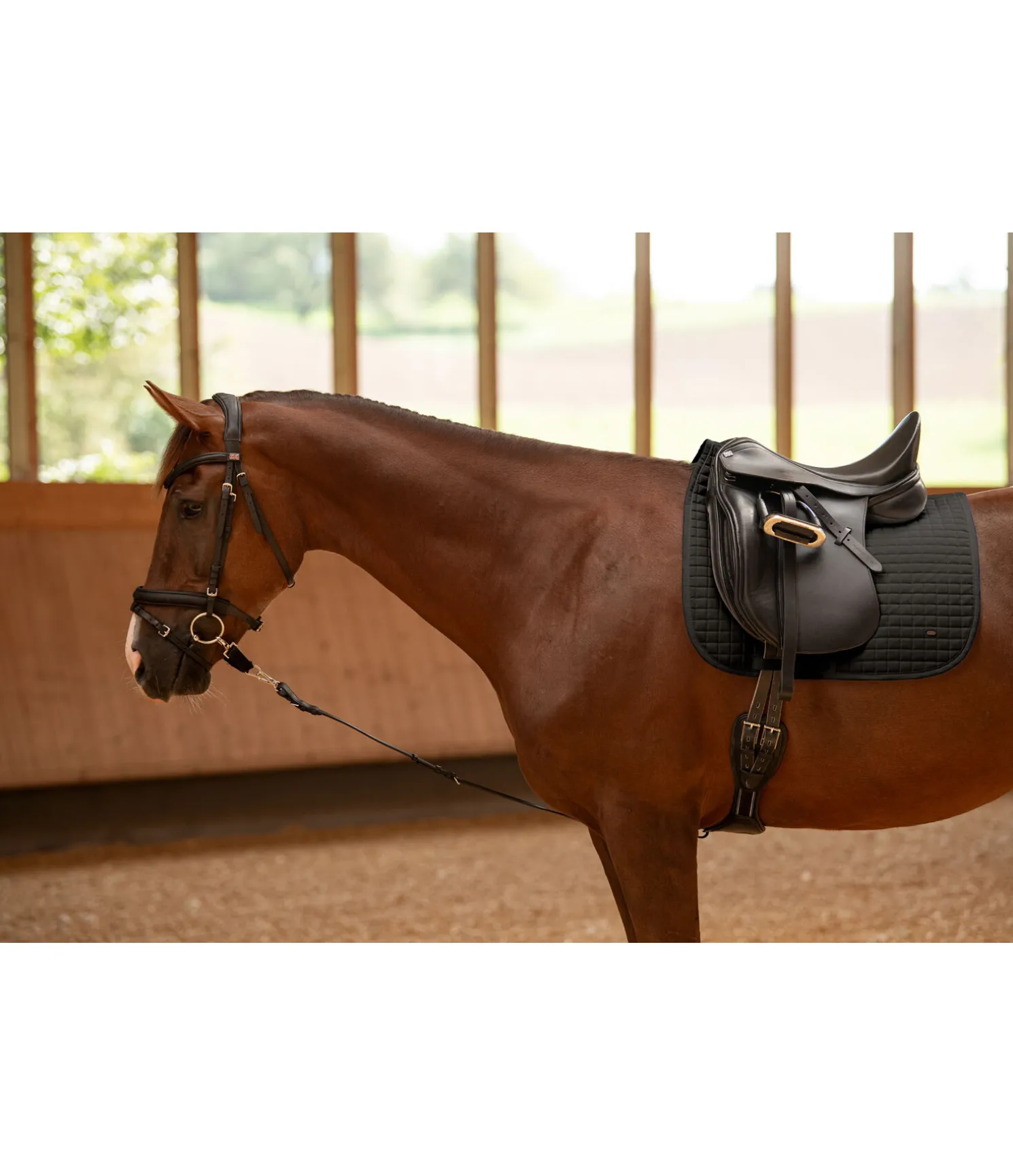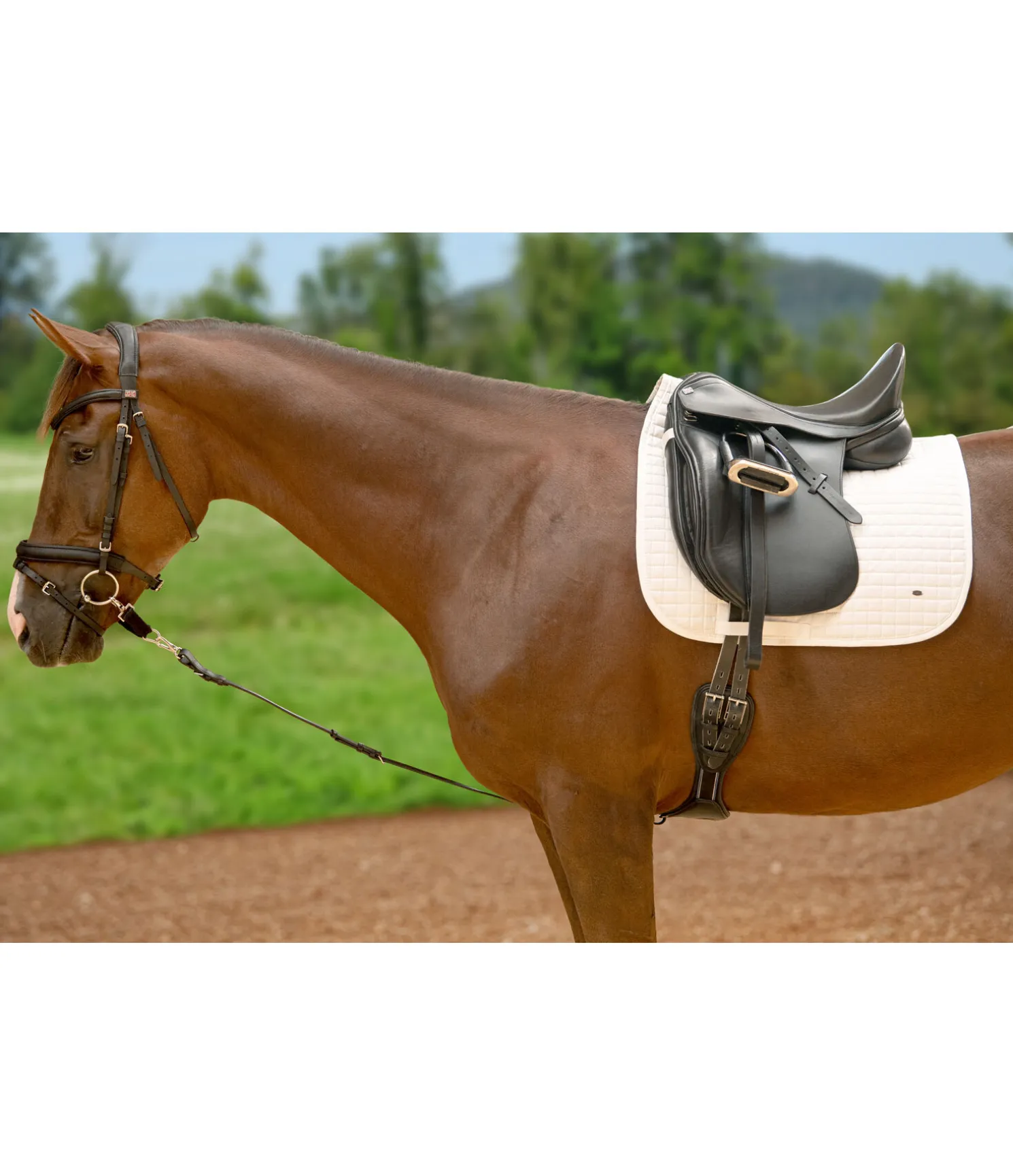 Enrênement en cuir de haute qualité de la marque SHOWMASTER. S’attache facilement à la sangle grâce au mousqueton et est facilement réglable en son milieu. De 100 cm à 112 cm.