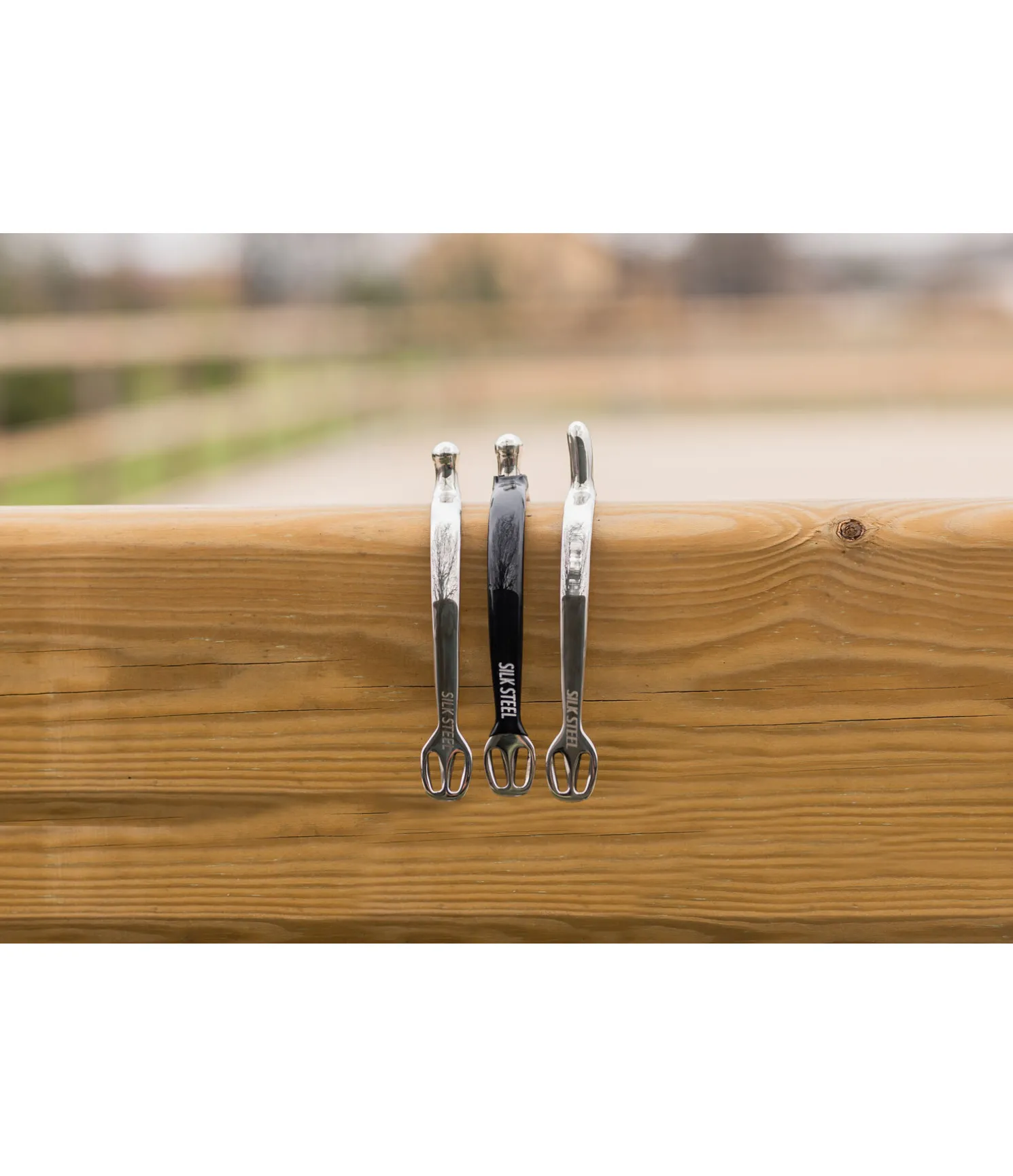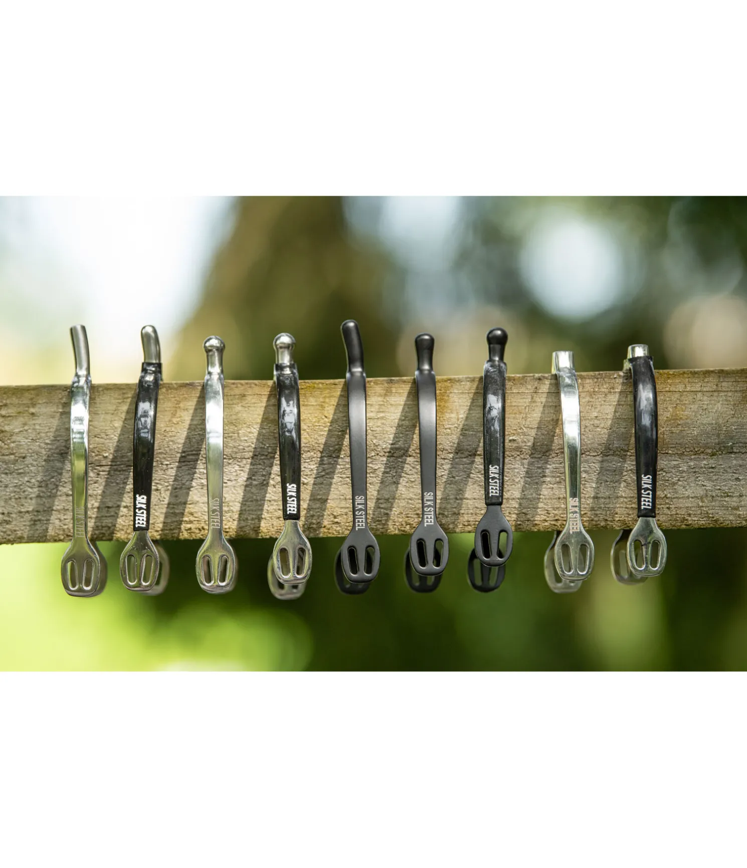 Éperons en acier inoxydable. Logo SILK STEEL gravé. Forme améliorée des oeillets facilitant le passage des lanières. Tige d´éperon légèrement arrondie.