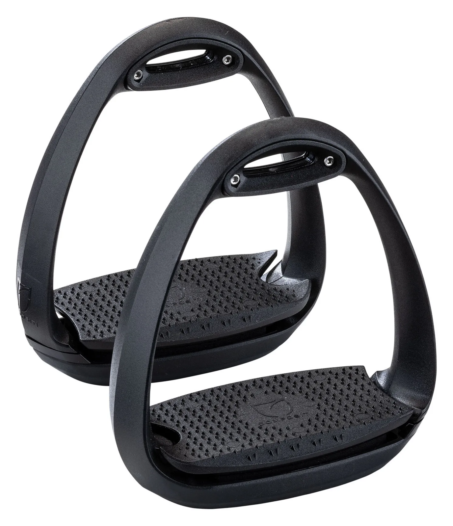 Étriers légers et particulièrement résistants aux chocs. Large plancher offrant un confort maximal. Oeillets interchangeables permettant un positionnement classique ou perpendiculaire de l’étrier. Accompagnent parfaitement le mouvement du pied. Vendus par paire.