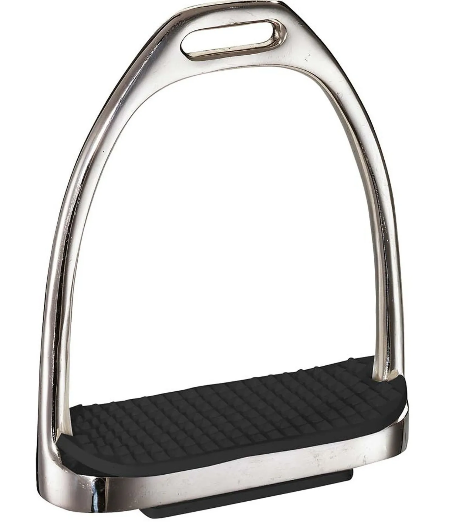 Étriers nickelés. Couleur argentée, avec semelle en caoutchouc noir. La paire.
