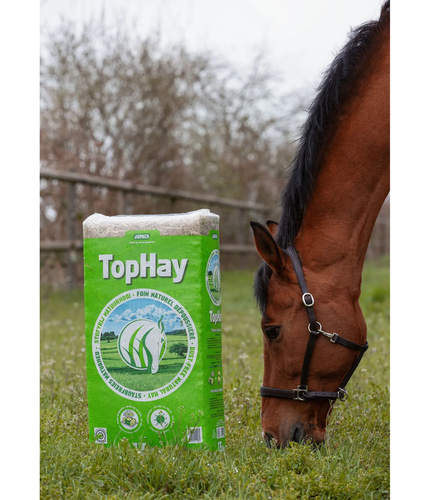 Foin de prairie naturel récolté dans des prairies écologiques, sans herbicides ni conservateurs. Foin sec et sans poussière (dépoussiéré et tamisé deux fois) à fibres longues, pauvre en protéines et à haute teneur en cellulose. Agréable odeur naturelle d’herbe. Convient parfaitement comme complément à la ration de foin normale, comme récompense ou pour les chevaux difficiles.