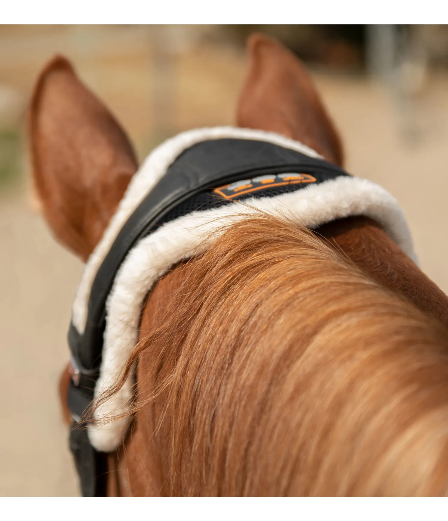 Fourreau de têtière anatomique avec triple patte auto-agrippante pour une fixation rapide au licol ou au bridon. Extra large au centre et avec découpe aux oreilles pour bien couvrir la zone de la nuque. Bordures en polaire Teddy douce pour éviter les irritations dues aux frottements. Avec fibres de céramique intégrées, qui réfléchissent la chaleur corporelle et améliorent la circulation sanguine. Peut avoir un effet positif sur les tensions musculaires dans la zone des vertèbres cervicales et aider le cheval à se détendre. En tissu Air mesh respirant et absorbant l’humidité. Nous déconseillons aux femmes enceintes ainsi qu’aux animaux en gestation l’utilisation des articles contenant des fibres de céramique. 100 % polyester.