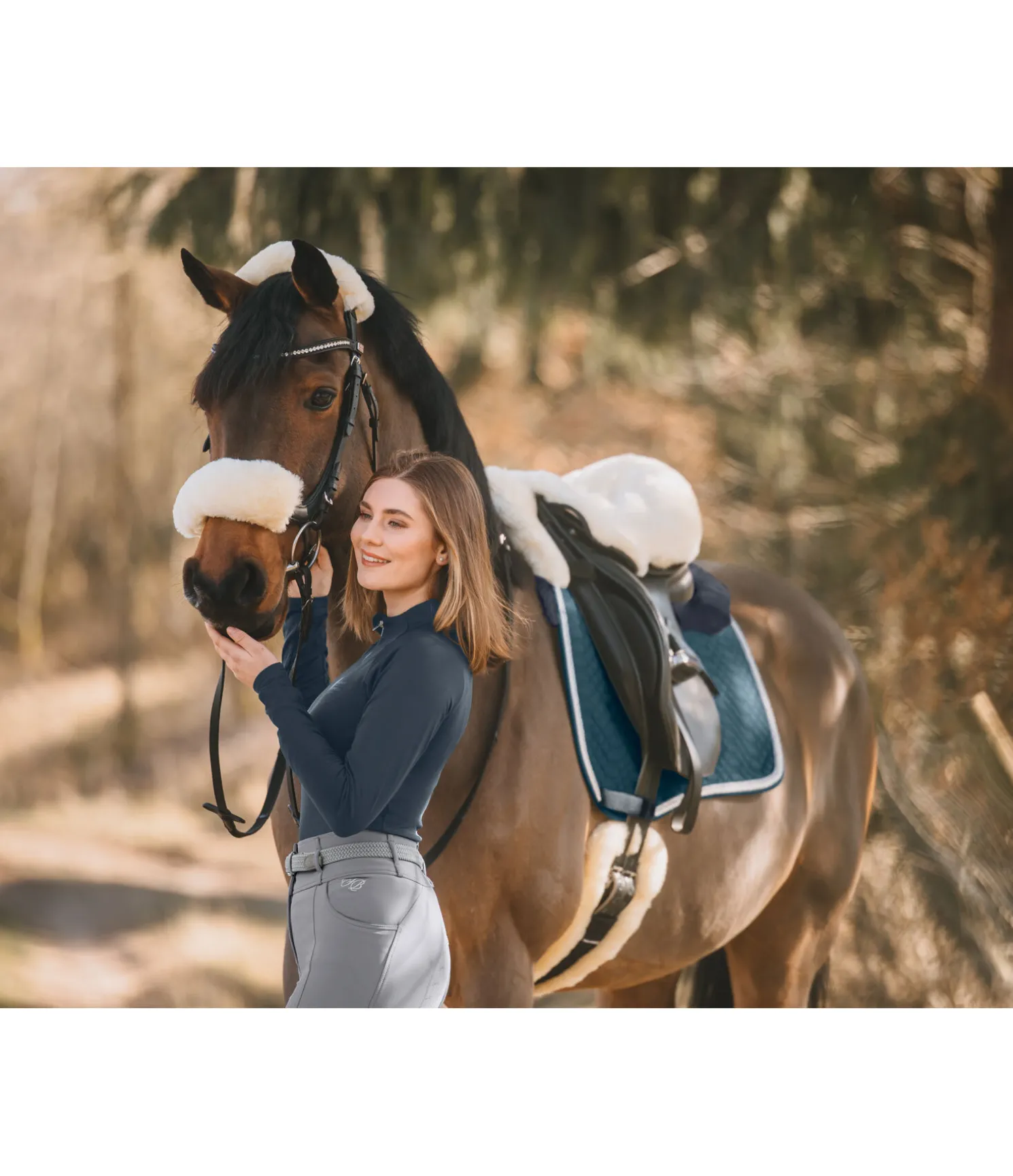 Fourreau en fourrure d’agneau avec bande auto-agrippante qui permet d’éviter les irritations et les points de pression dans la nuque et sur le chanfrein. 100 % fourrure d’agneau mérinos. Lavable à 30 degrés avec le programme de lavage spécifique pour la laine. Veuillez utiliser uniquement une lessive spéciale pour fourrure d’agneau. P (Poney) : 21 cm F (Full) : 25 cm.