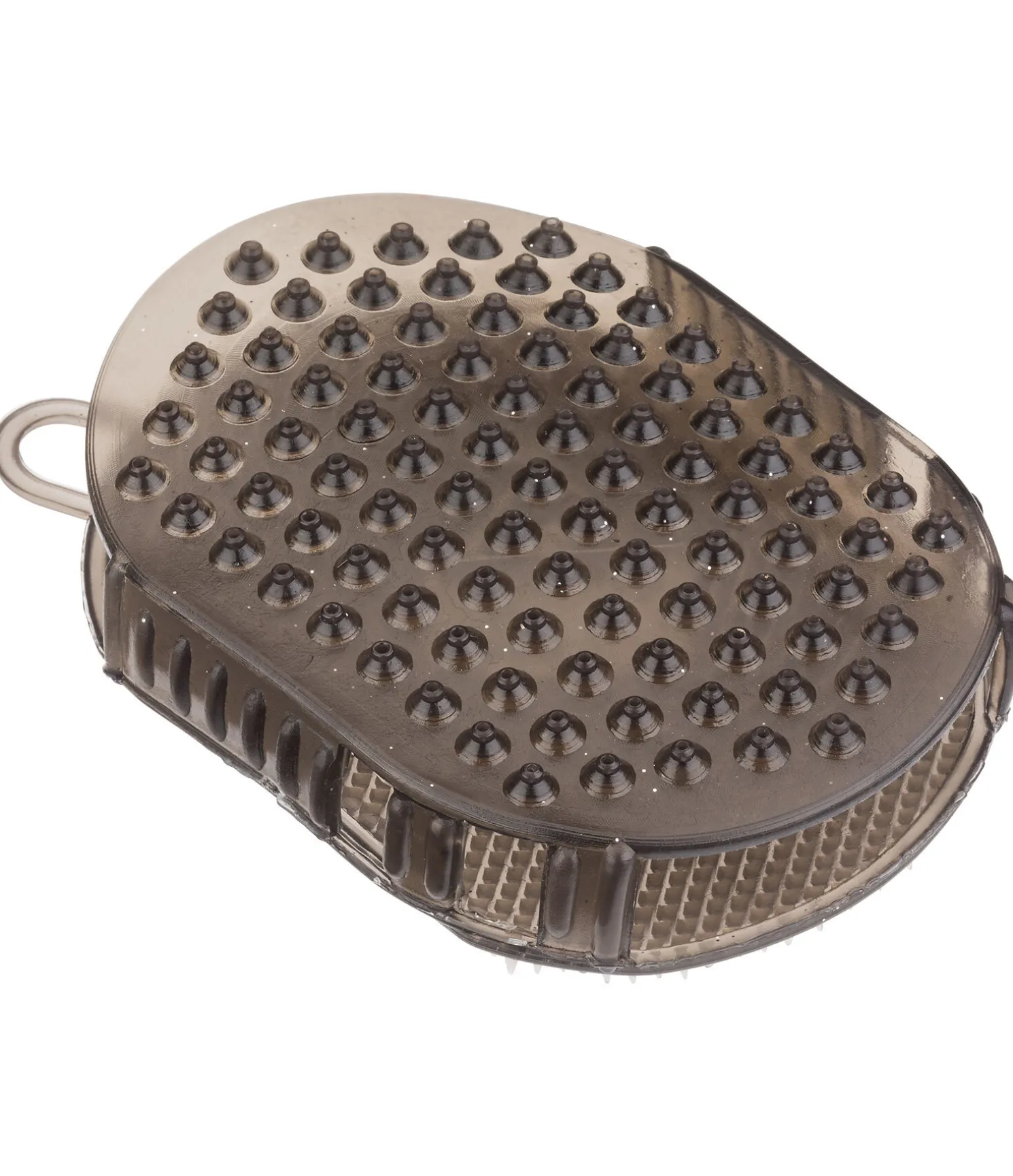 Gant de massage en caoutchouc transparent avec un léger effet pailleté. Idéal pour les soins quotidiens de la robe et les massages. Un côté à petits picots et un côté à gros picots.