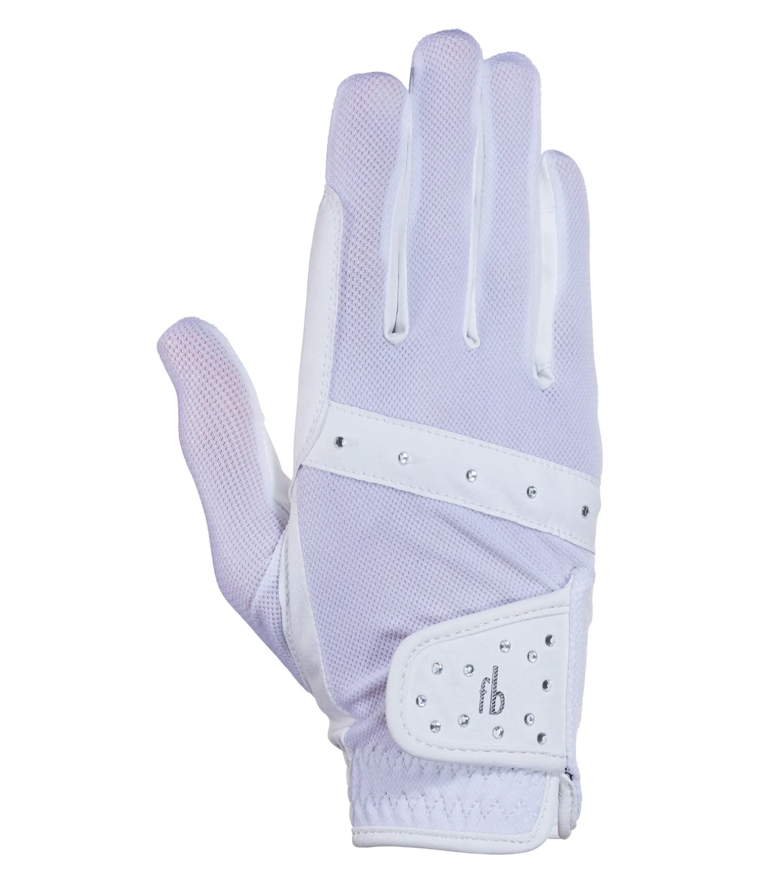 Gants d’équitation d’été élégants. Tissu mesh respirant sur le dessus de main, idéal pour les chaudes journées. Strass décoratifs. Fermeture par patte auto-agrippante avec logo Felix Bühler. Renfort de rêne sur l’index pour éviter les irritations dues aux frottements. Gants compatibles avec les écrans tactiles. Dessus et paume 100 % nylon. Mesh 100 % polyester.