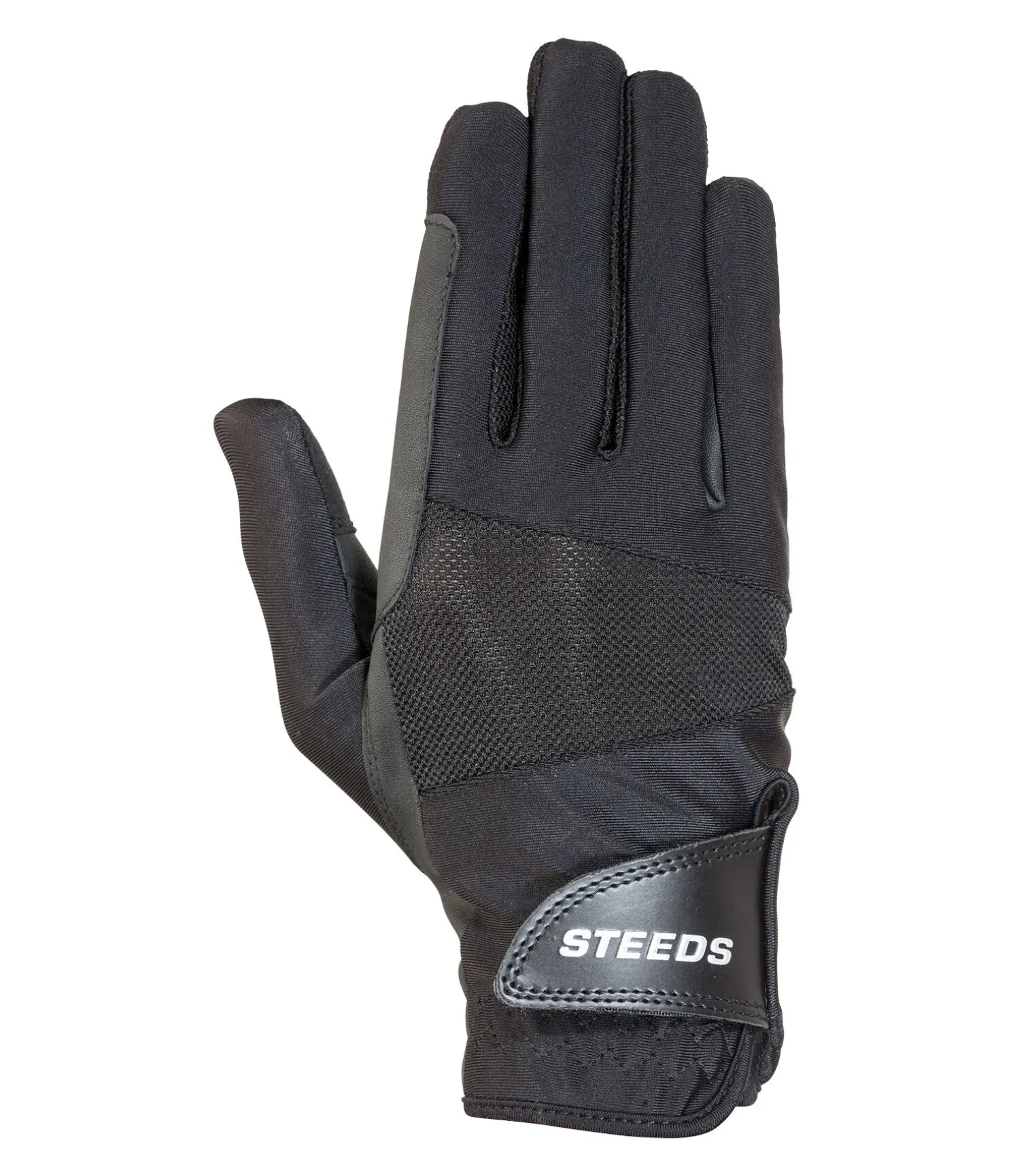 Gants d’équitation d’été légers au look sportif. Dos de la main extensible en tissus mesh respirant et en nylon fin. Paume antidérapante en matière PU pour une bonne prise en main des rênes. Poignets élastiqués avec logo STEEDS métallisé imprimé sur la fermeture auto-agrippante. Renforts aux passages de rênes. Dessus : 70 % nylon, 30 % élasthanne. Paume: 80 % polyuréthane, 20 % polyester.