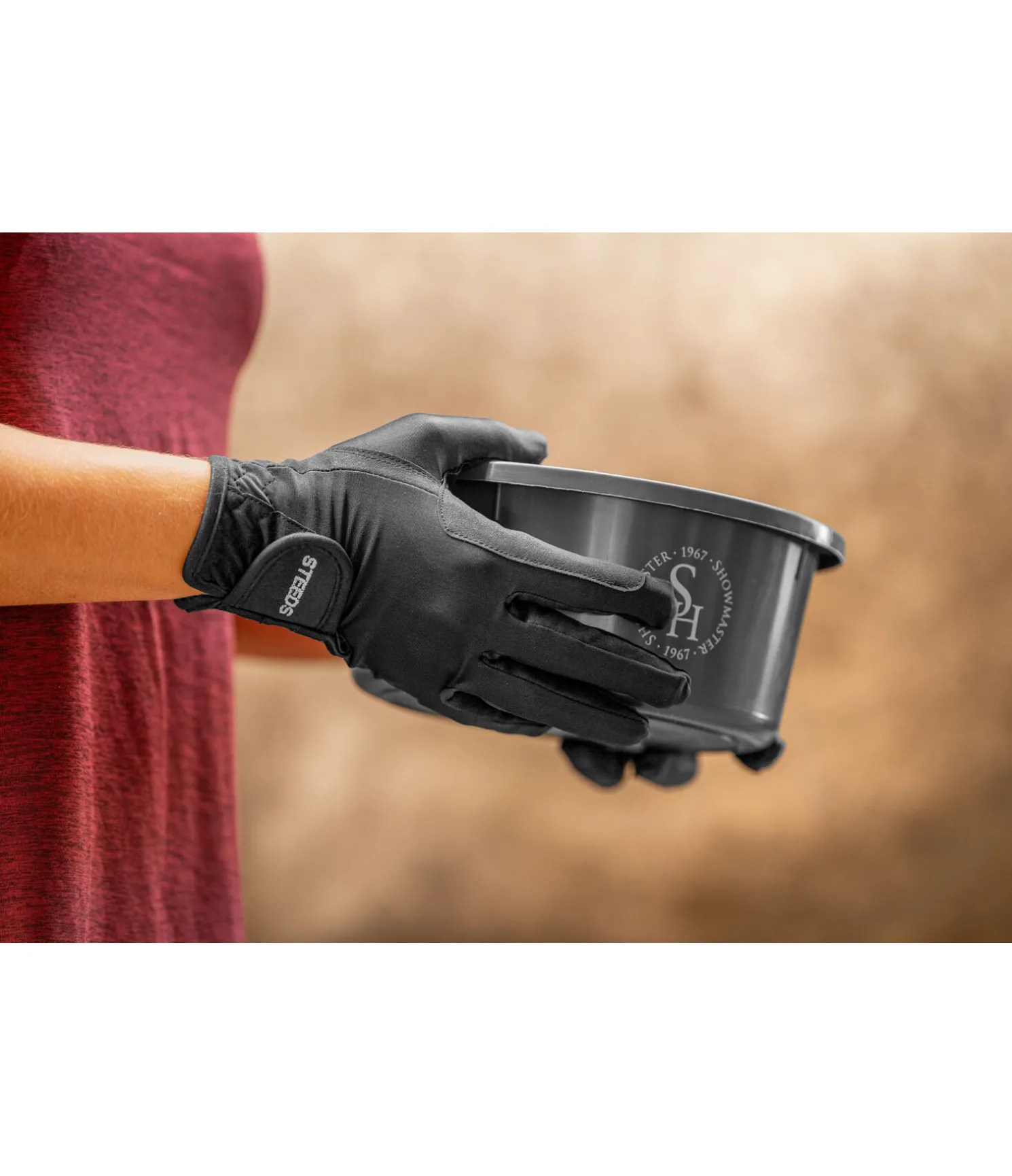 Gants d’été élégants dans de superbes couleurs. La paume est faite de matière synthétique extra souple, conférant une bonne prise de rênes et le dos de la main en matière respirante, rendant ces gants idéaux pour l’été. Poignet avec bande élastique et fermeture à patte auto agrippante. Dessus : 82 % nylon, 18 % élasthanne. Paume : 65 % polyester, 35 % polyuréthane.