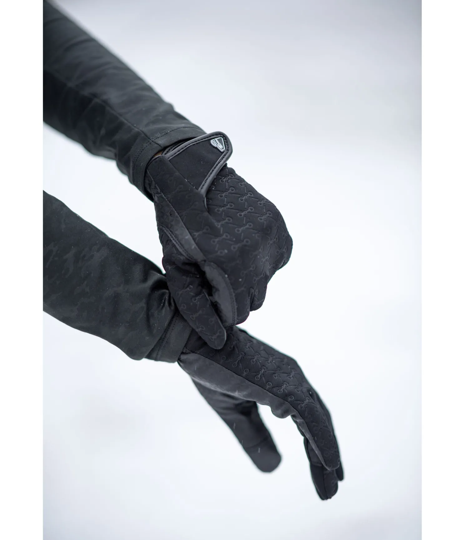 Gants d’équitation d’hiver classiques et fins avec motif de mors. Matière softshell extensible pour que les gants s’adaptent à toutes les mains. Déperlants et coupe-vent. Compatibles avec les écrans tactiles. Renforts aux passages de rênes. Dessus 100 % nylon. Paume 60 % polyester, 40 % polyuréthane. Doublure 100 % polyester.