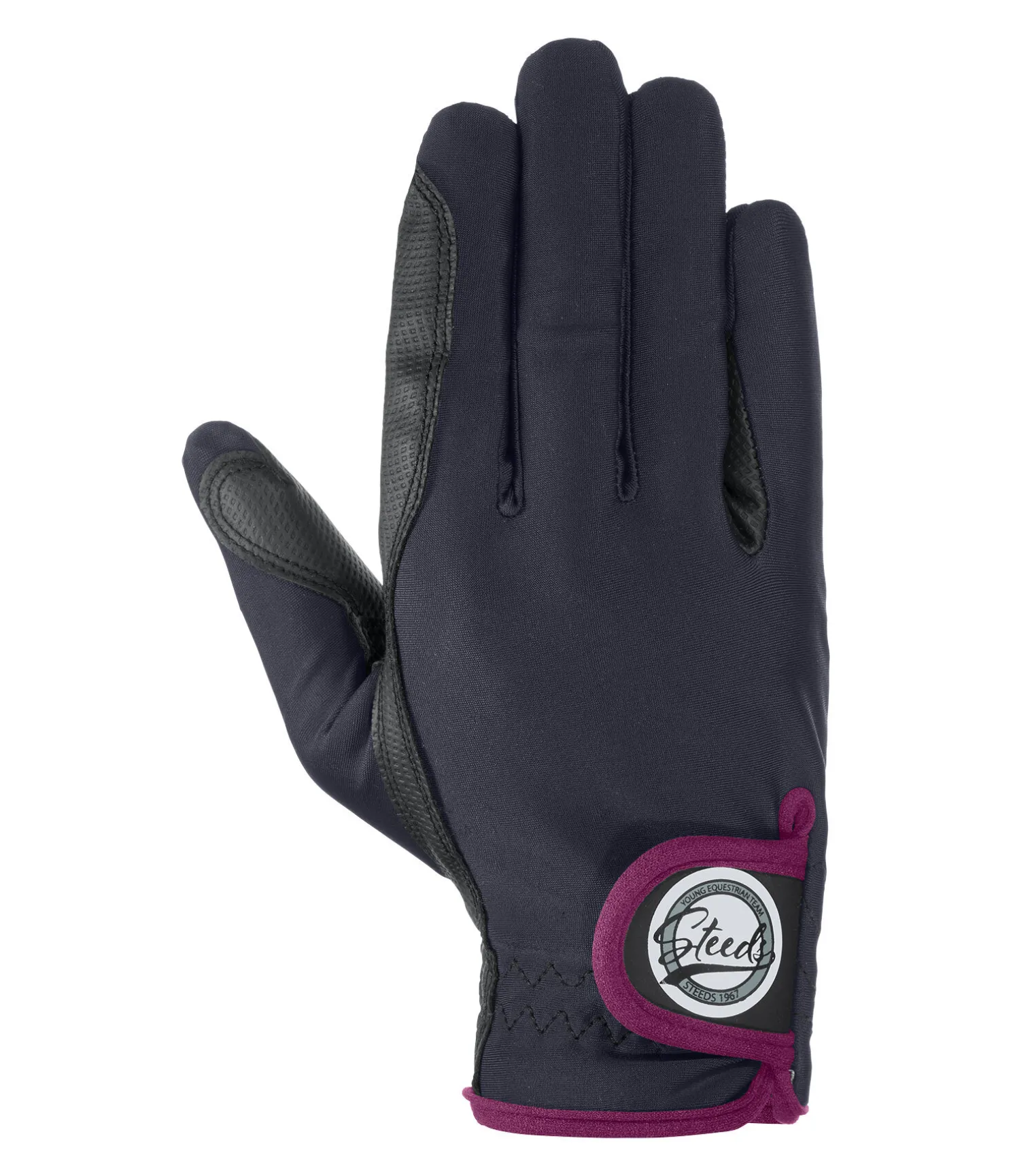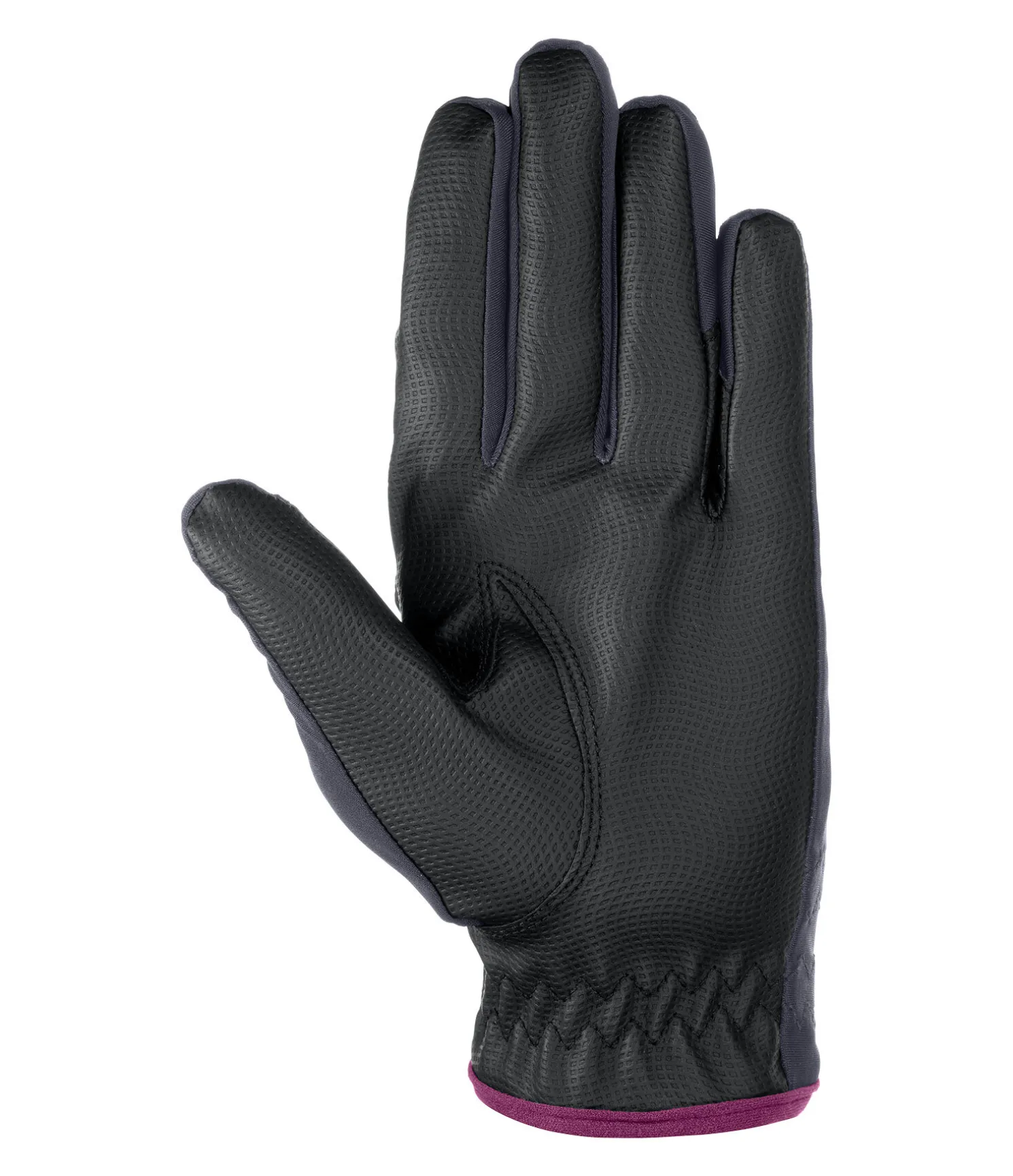Gants d’équitation d’hiver sportifs avec doublure en polaire chaude, passepoil coloré et patte auto-agrippante. Dessus 85 % nylon, 15 % élasthanne. Paume 80 % polyuréthane, 20 % polyester. Doublure 100 % polyester.
