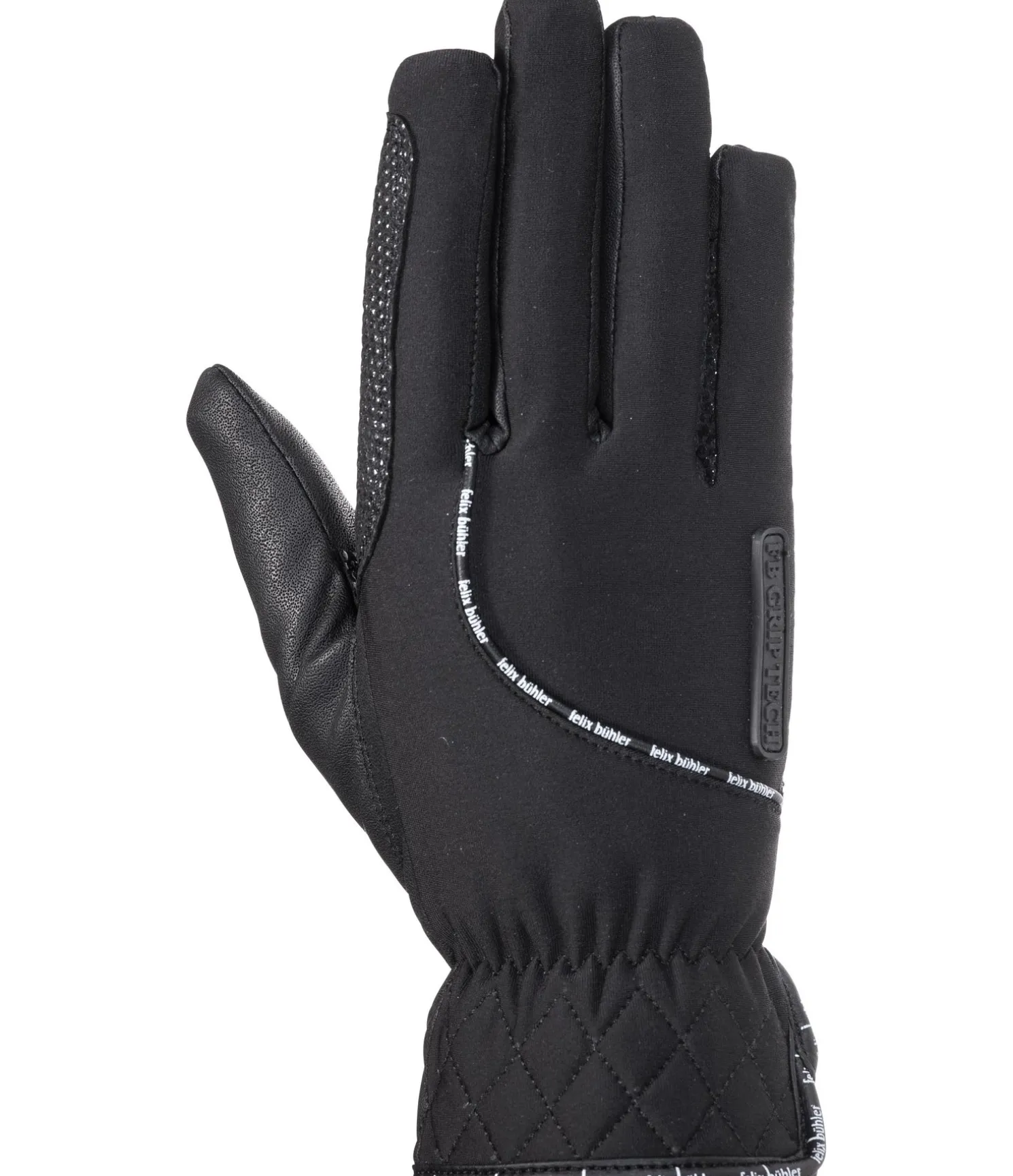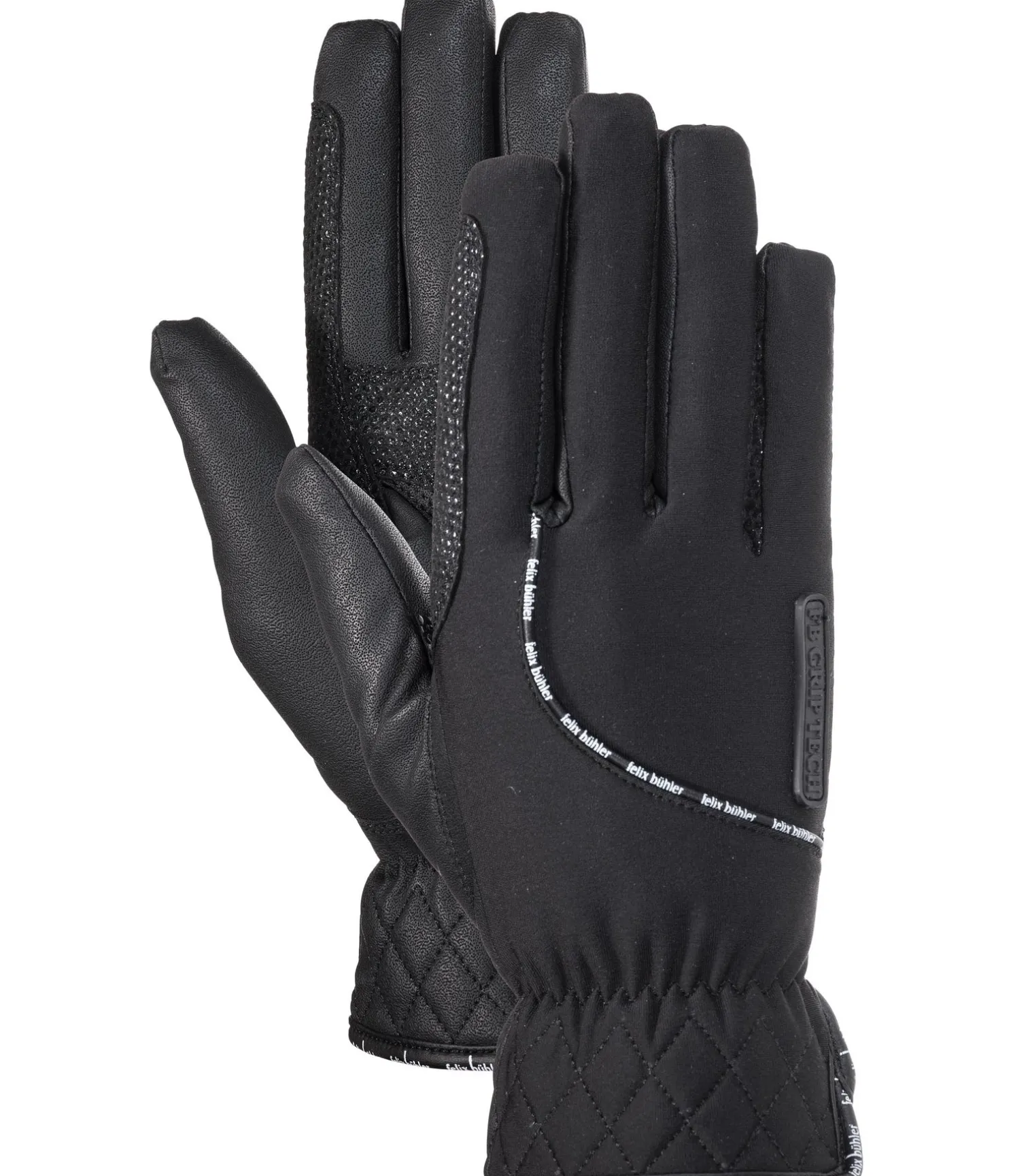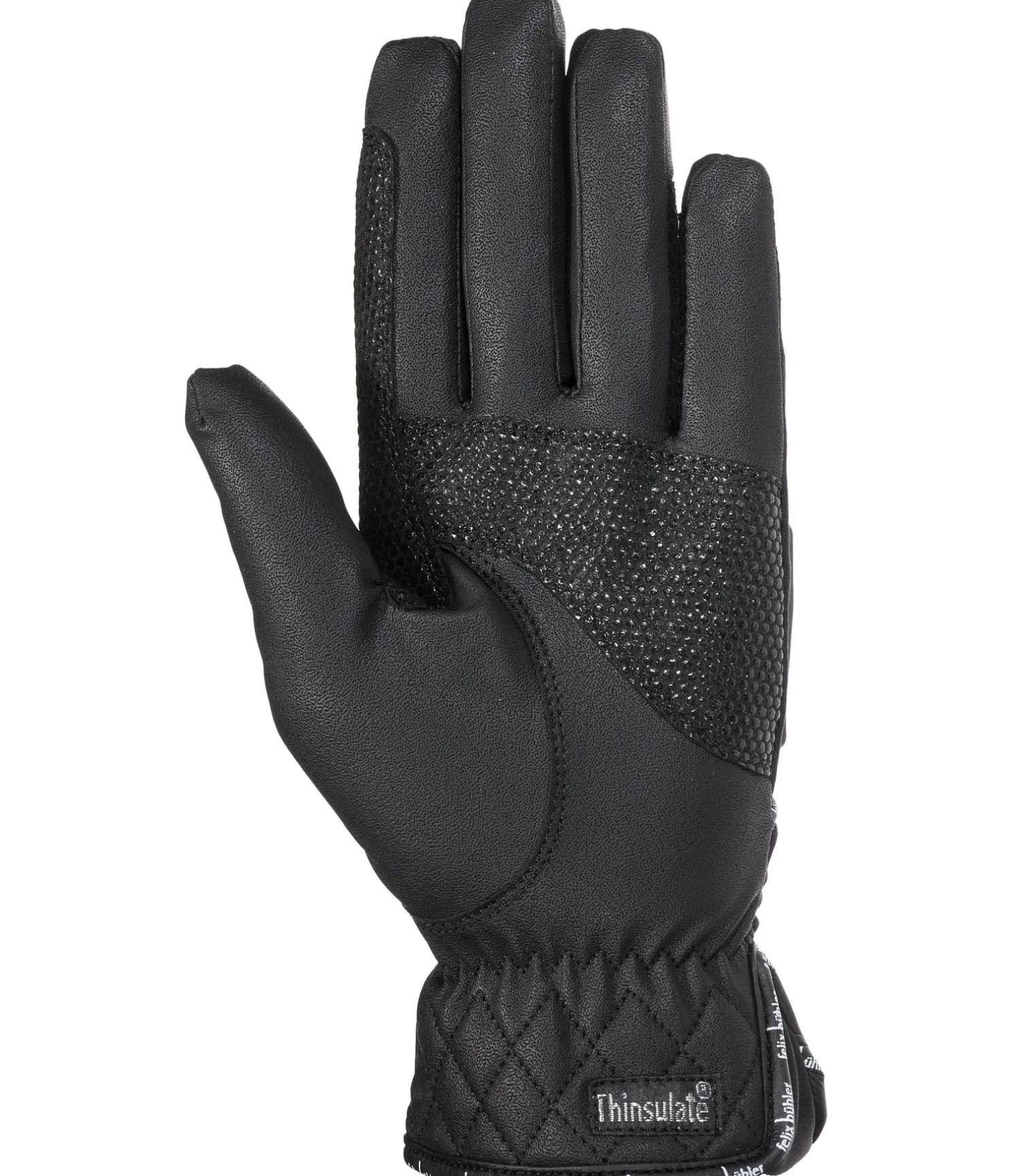 Gants d’hiver avec excellente accroche aux rênes grâce aux imprimés grip sur la matière synthétique du côté paume de la main. Déperlants, coupe-vent et respirants. Doublure Thinsulate. Dessus 87 % polyester, 13 % élasthanne. Paume 100 % polyester avec revêtement polyuréthane. Doublure 100 % polyester.