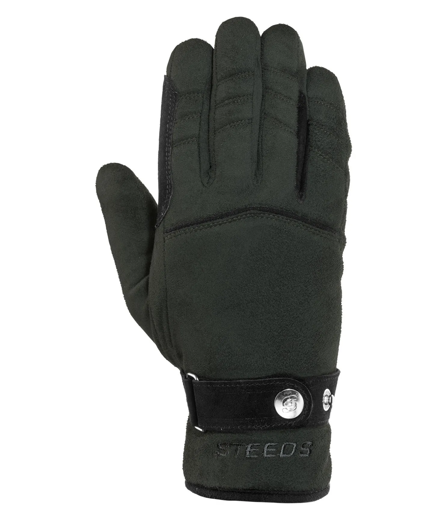 Gants chauds et douillets en polaire. Avec renforts intégrés aux passages de rênes et finition bouton-pression au poignet.