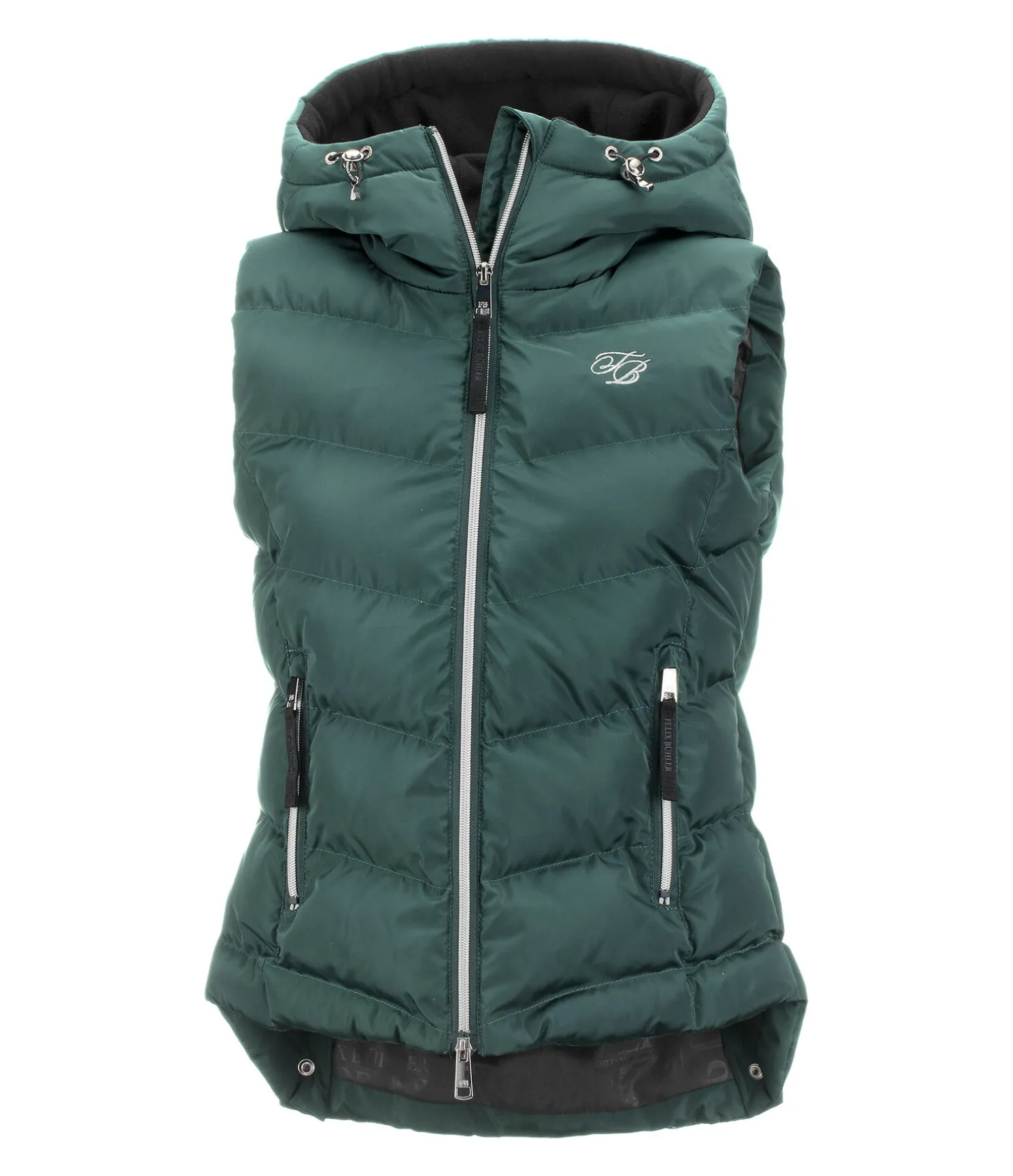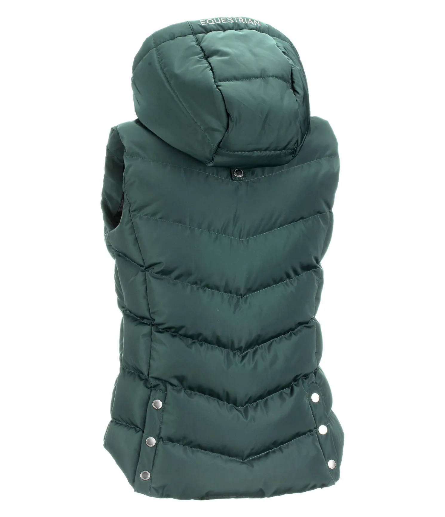 Gilet d’équitation avec doublure chaude. Capuche haute réglable doublée en polaire. Bouton-pression pour fixer la capuche dans le dos. Coupe cintrée légèrement plus longue à l’arrière. 2 poches avant zippées. Fermeture à glissière double sens avec sous-patte et protège-menton. 2 fentes cavalières avec boutons-pression à l’arrière. Garnissage doux imitation duvet. Broderie sur la poitrine et sur la capuche. 100 % polyester.