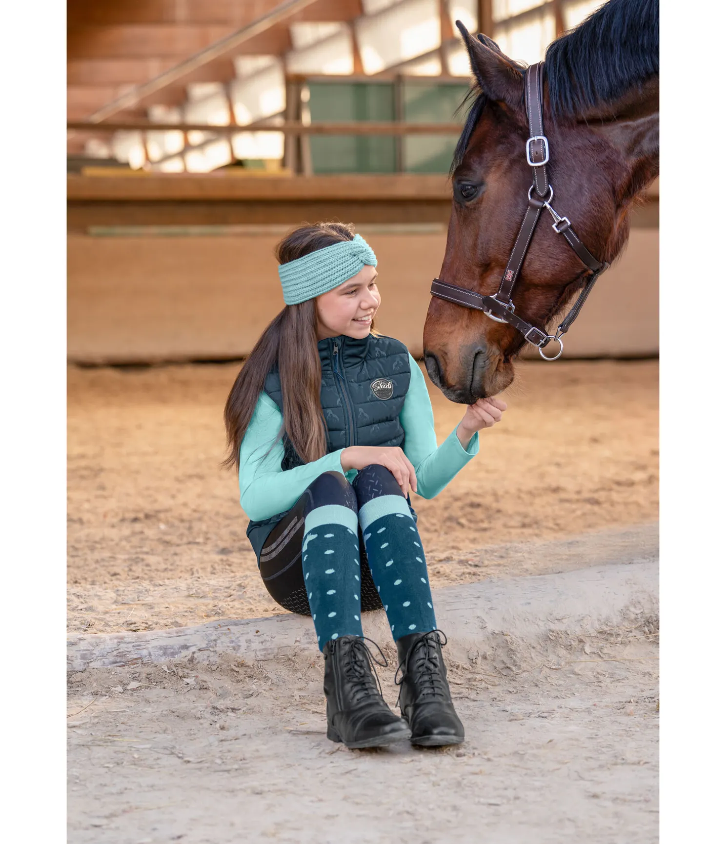 Gilet d’équitation technique en softshell avec inserts matelassés chauds à l’avant et sur le col montant. Déperlant et coupe-vent. Imprimé scintillant all-over à l’avant. Fermeture à glissière double sens avec sous-patte et protège-menton. 2 poches avant zippées et dissimulées. Finition côtelée à la taille. Badge STEEDS sur la poitrine et broderie dans le dos. 100 % polyester.