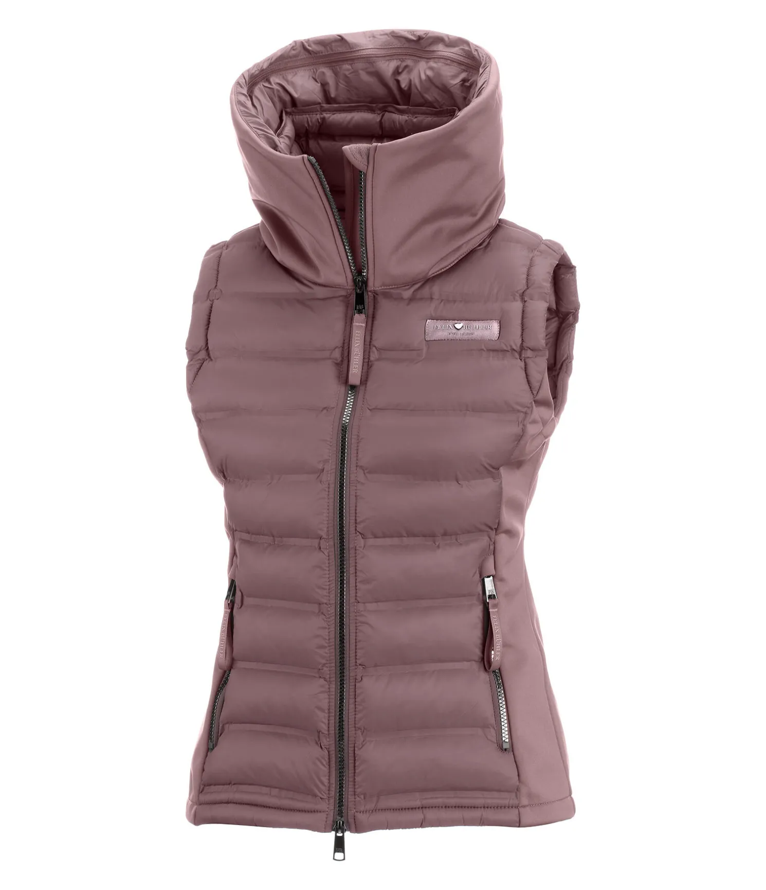 Superbe gilet en softshell extensible et nylon avec un garnissage très doux en imitation duvet devant et derrière. Coupe-vent. Double col et capuche rembourrée repliable dans le large col extérieur par fermeture à glissière, coutures thermosoudées, fermeture à glissière double sens avec sous-patte et protège-menton, 2 poches zippées devant. Logo élaboré sur la manche et le col. Avant, dos, col intérieur et capuche 100 % nylon, matière softshell 92 % polyester, 8 % élasthanne.