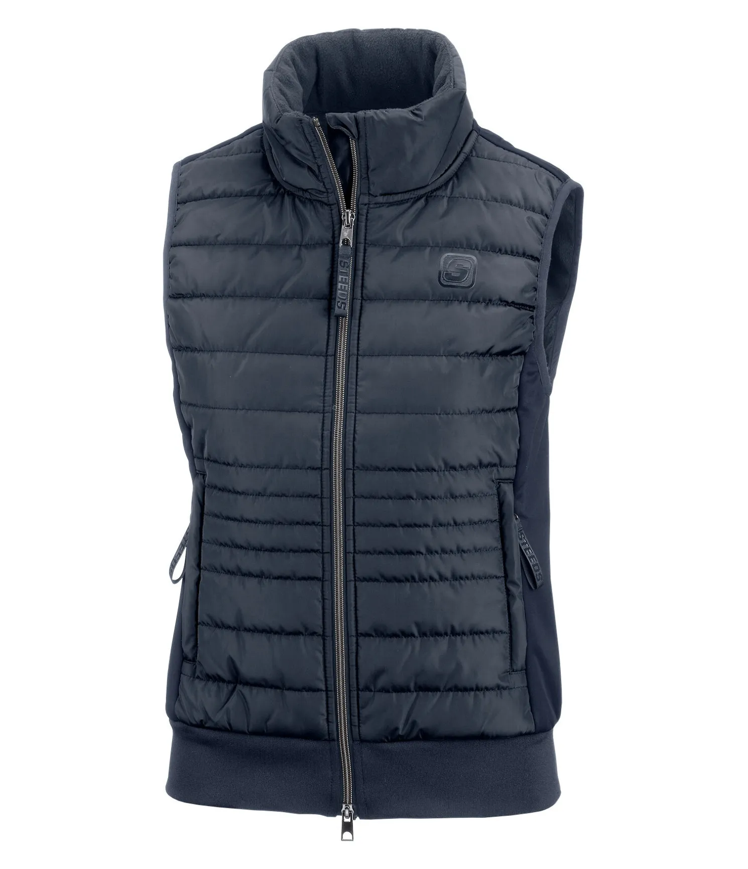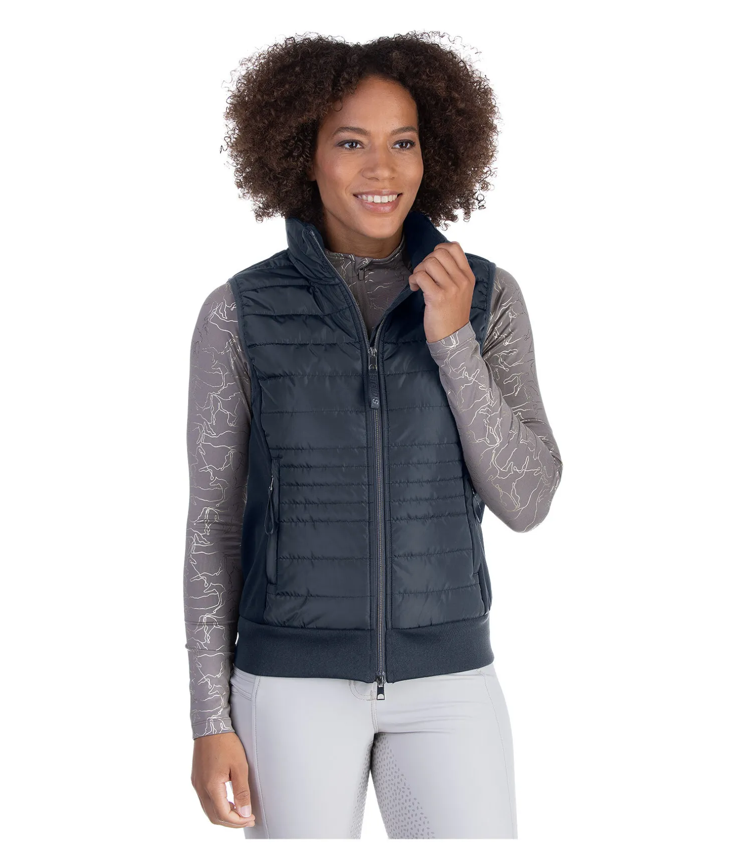Gilet softshell technique avec inserts matelassés chauds à l’avant. Col montant. Déperlant et coupe-vent. Fermeture à glissière double sens avec sous-patte et protège-menton. 2 poches avant zippées et dissimulées. Finition en bord-côte sur l’ourlet. Logo sur la poitrine et imprimé «Equestrian sportswear» au dos. 100 % polyester.