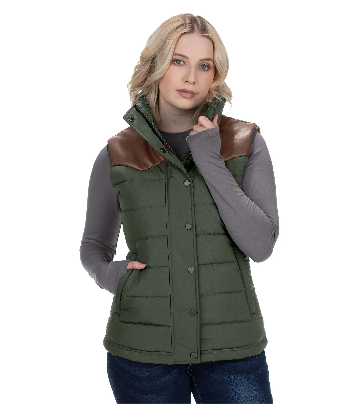Gilet matelassé tendance avec empiècements aux épaules et applications en synthétique. Avec col montant, fermeture à glissière à double sens sur le devant et poches zippées. Coupe-vent. Tissu extérieur : 100 % polyester. Synthétique : 50 % polyester, 50 % polyuréthane.