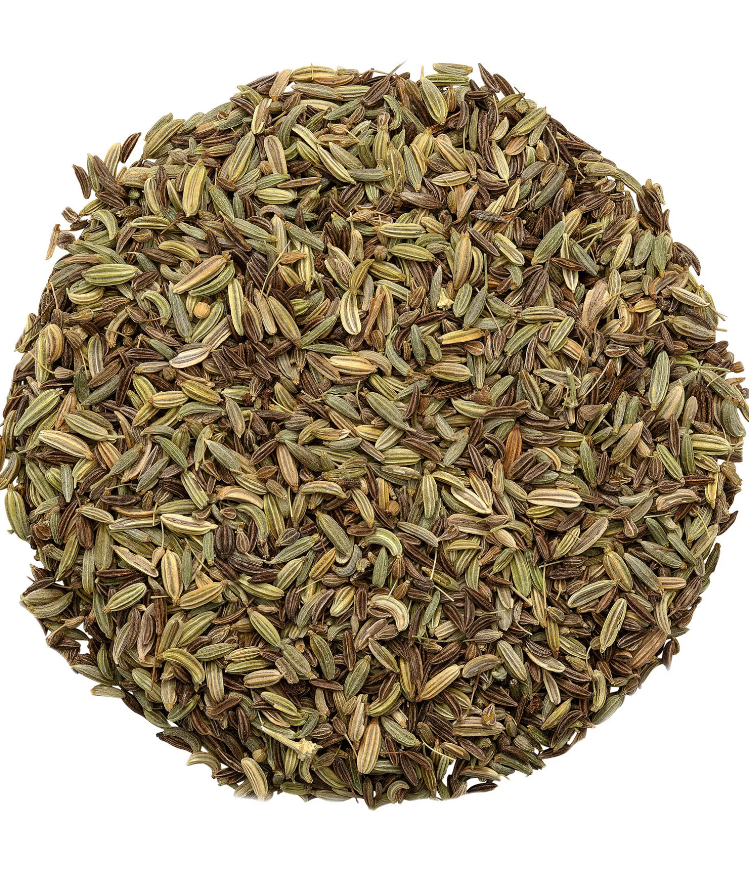Composition : graines de fenouil entières 45 %; cumin entier 30 %; graines d’anis entières 25 %.