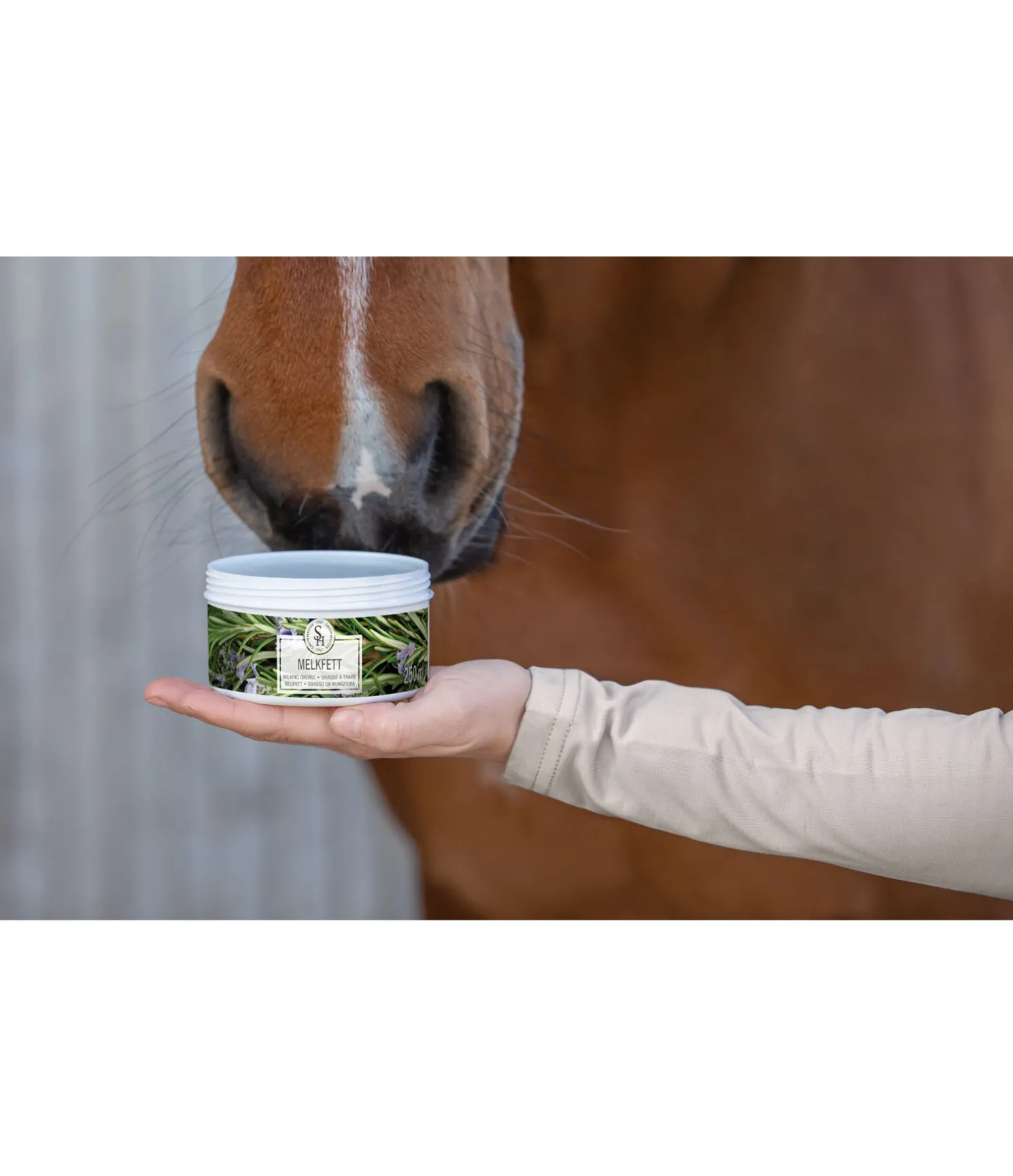 Graisse à traire de qualité supérieure pour les soins intensifs des peaux abîmées. Contient de l’extrait de romarin. Utilisation: appliquer en couche fine sur les parties à traiter.