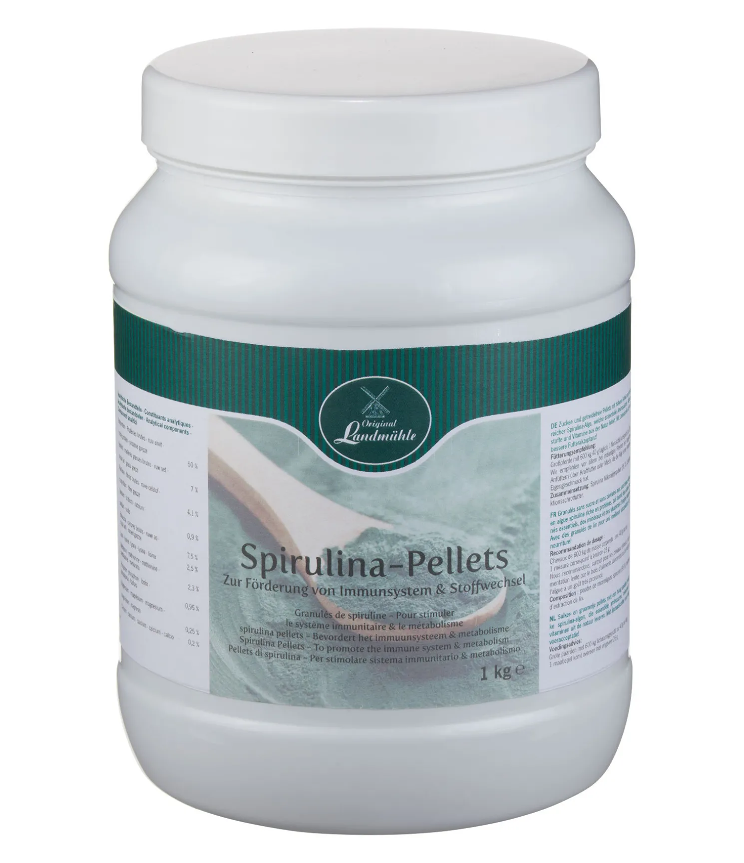 Nous recommandons de donner les granulés de spiruline Original Landmühle aux chevaux en perte d’état ou âgés qui ont besoin d’un apport supplémentaire en substances nutritives ou aux chevaux qui sont en train de développer leur musculature ou qui ont des problèmes pour faire du muscle en raison de maladies comme la myopathie par exemple. Lors de la mue saisonnière, cet aliment peut également être un complément judicieux à l’alimentation de base. La spiruline contenant près de 50 % de protéines, ce produit est déconseillé aux chevaux qui ont un régime pauvre en protéines.