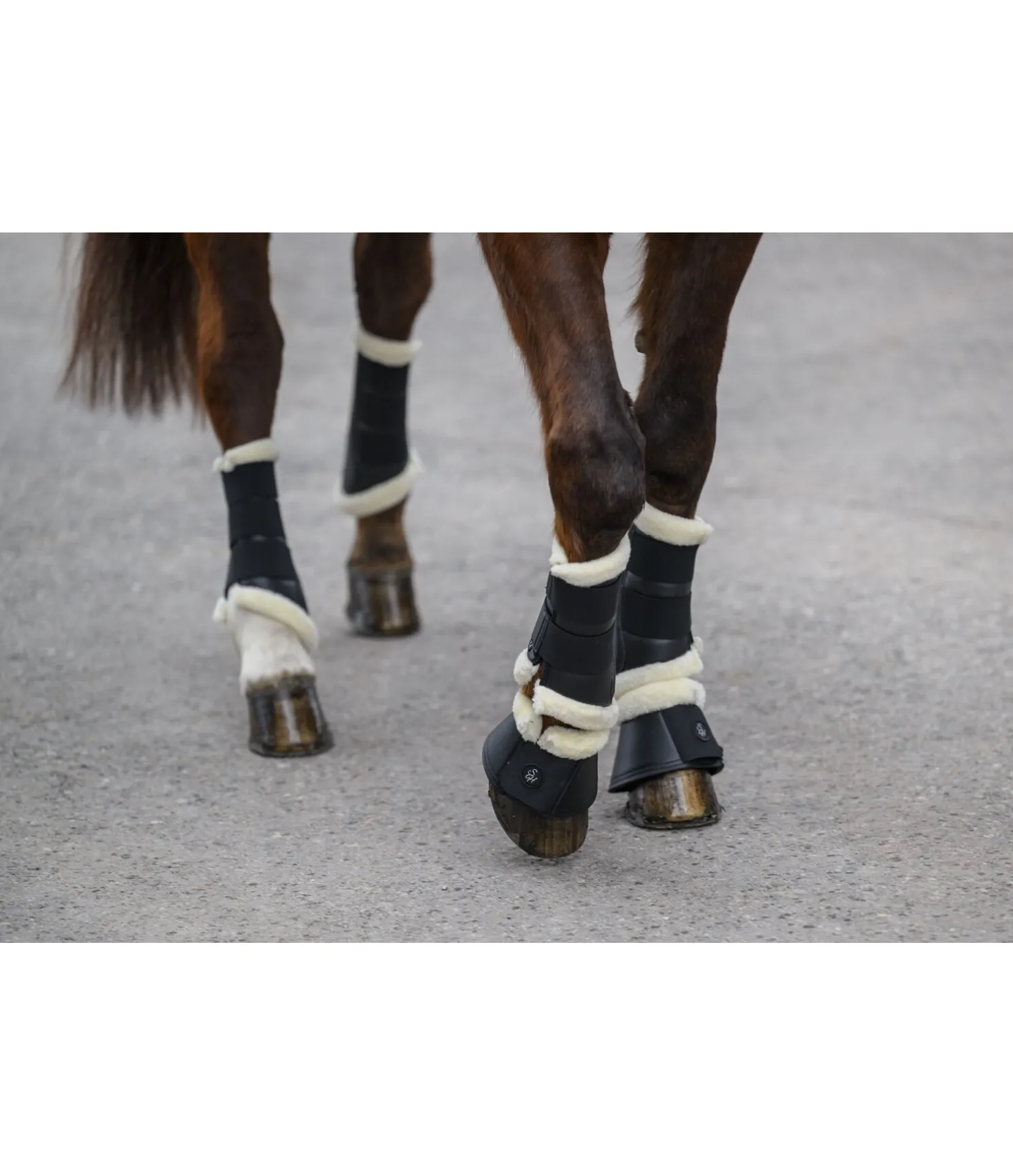 Guêtres de dressage en synthétique résistant avec bordures en polaire Teddy douce. Doublure en mesh rembourré pour éviter toute accumulation de chaleur. Pattes auto-agrippantes élastiquées pour un parfait ajustage assurant le meilleur maintien. Vendues par paire.