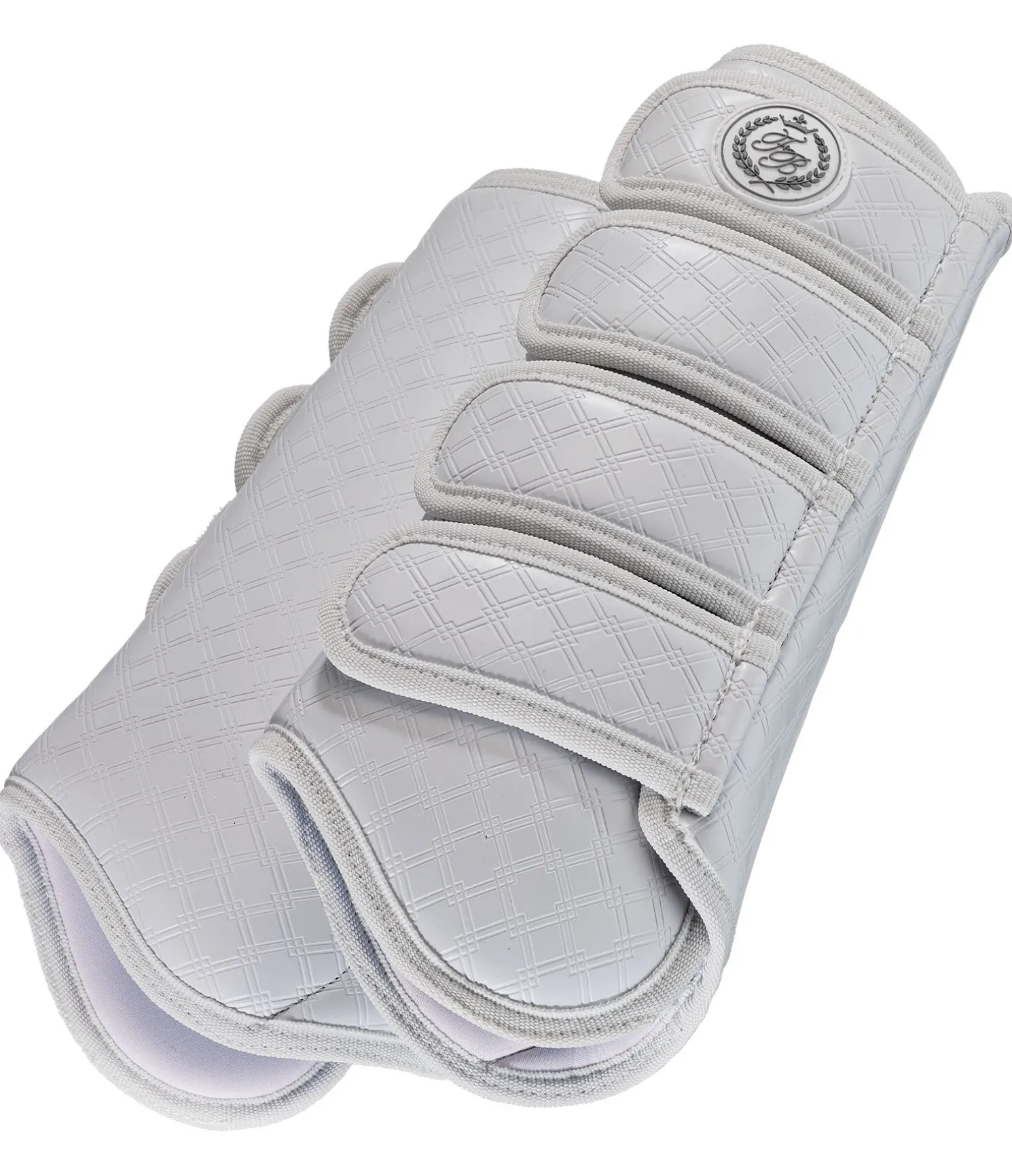 Guêtres anatomiques au look sportif en matière synthétique élégamment gaufrée. Avec protection intégrale protégeant des impacts sur les tendons et 4 pattes auto-agrippantes robustes pour un maintien sûr. Doublure moelleuse en caoutchouc-chloroprène pour une protection optimale contre les chocs. Pour postérieurs.