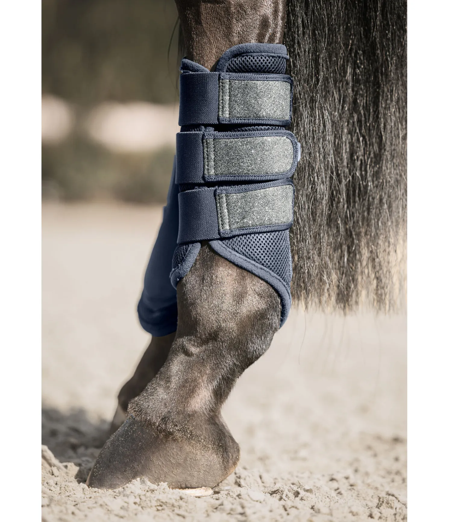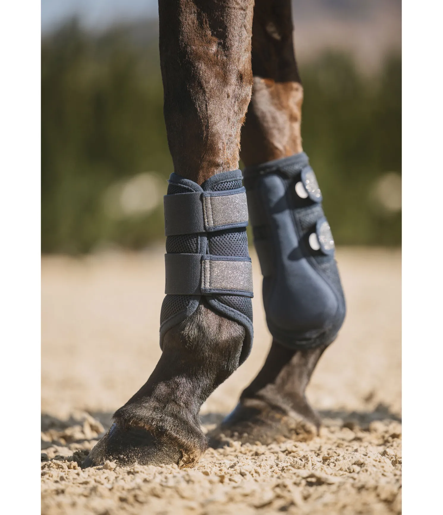 Guêtres pour les antérieurs légères, souples et particulièrement respirantes en matière Air mesh qui permet une circulation de l’air permanente. Inserts scintillants sur les attaches et pattes auto-agrippantes élastiquées pour un ajustement optimal. Renfort sur la face intérieure en tissu d’extérieur 600 deniers pour une protection supplémentaire contre les chocs. Bord en polaire douce. 100 % polyester. Vendues par paire.