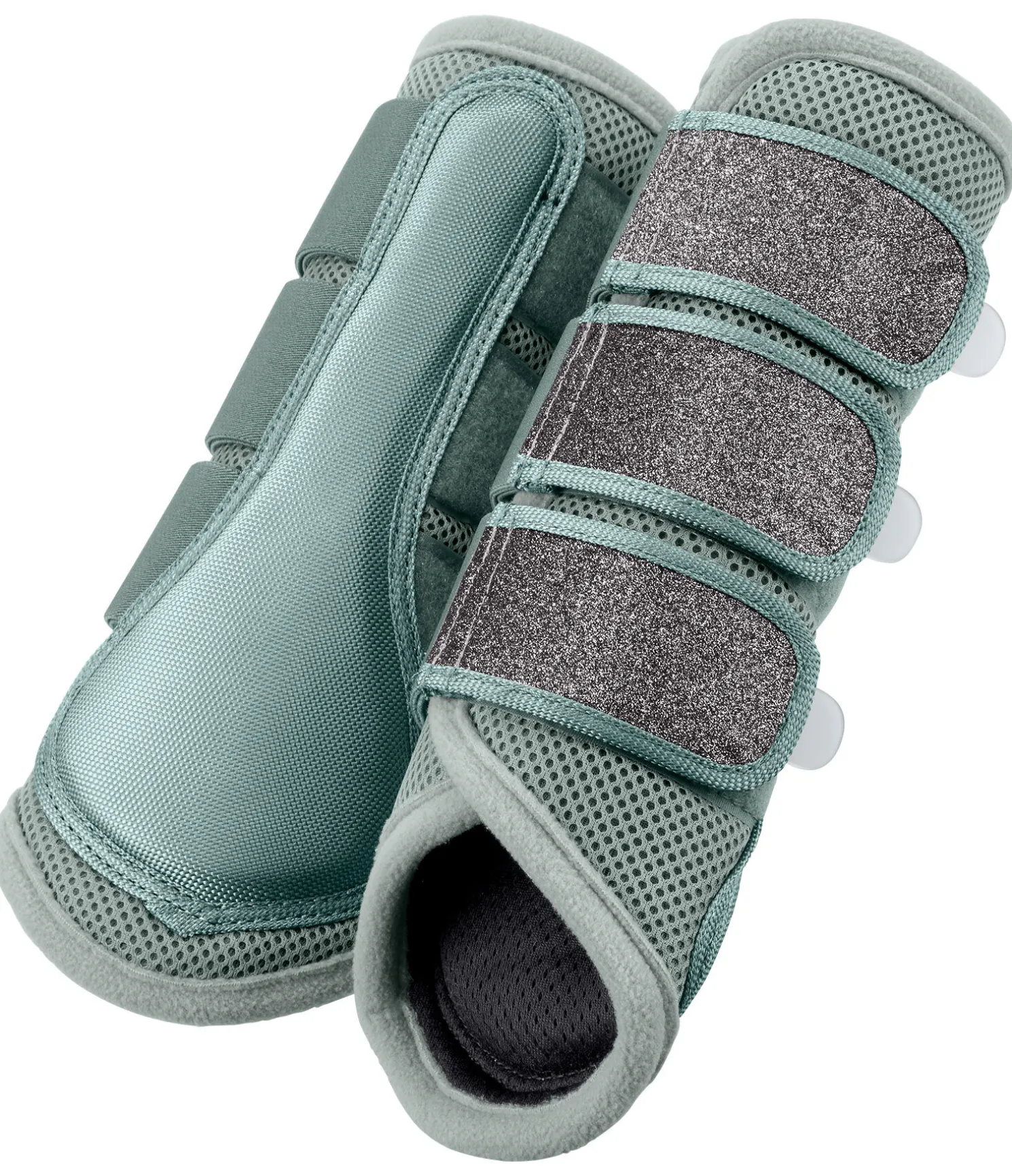 Guêtres pour les postérieurs légères, souples et particulièrement respirantes en matière Air Mesh qui permet une circulation de l’air permanente. Inserts scintillants sur les attaches et pattes auto-agrippantes élastiquées pour un ajustement optimal. Renfort sur la face intérieure en tissu d’extérieur 600 deniers pour une protection supplémentaire contre les chocs. Bord en polaire douce. 100 % polyester. Vendues par paire.